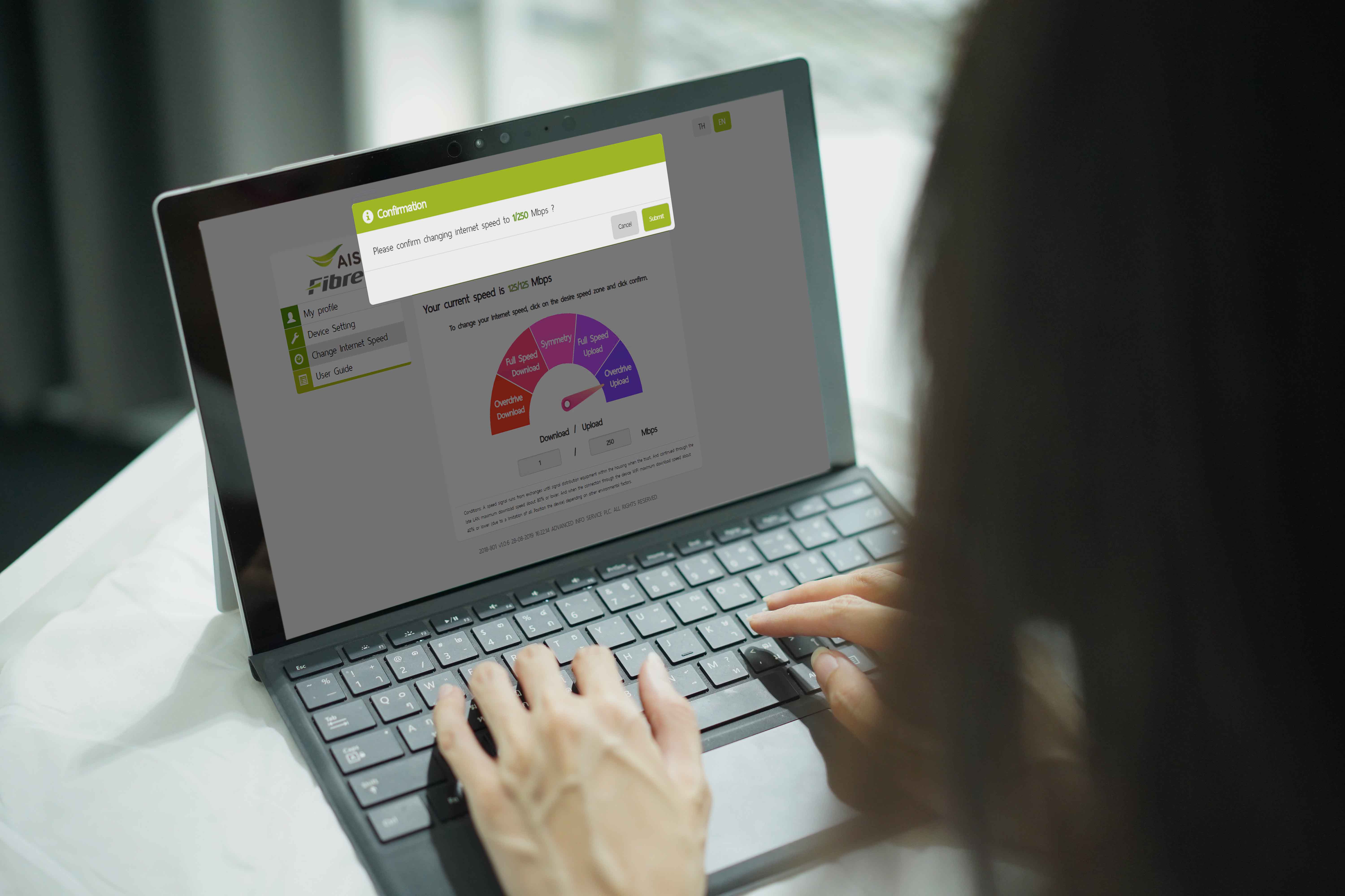 โดยพัฒนาระบบให้สามารถปรับสปีดได้แบบยืดหยุ่น เลือกรับความเร็วได้มากกว่าเดิม กับ “Speed Toggle แบบ Overdrive Download และ Overdrive Upload หรือบริการสลับความเร็วดาวน์โหลด และอัปโหลดเต็มสปีดแพ็กเกจ” ให้ลูกค้าเน็ตบ้าน AIS Fibre ที่มีแพ็กเกจตั้งแต่ 100 Mbps ขึ้นไป สามารถสลับค่าความเร็วเน็ตดาวน์โหลดและอัปโหลดด้วยตัวเองง่ายๆ ตามความต้องการใช้งานได้ตลอด 24 ชั่วโมง ผ่านเว็บไซต์ https://myaisfibre.com โดยไม่ต้องปรับแพ็กเกจให้สูงขึ้น แต่สามารถใช้งานเน็ตสปีดสูงสุดที่ยังไม่เคยมีขายในท้องตลาดได้ผ่านฟีเจอร์นี้