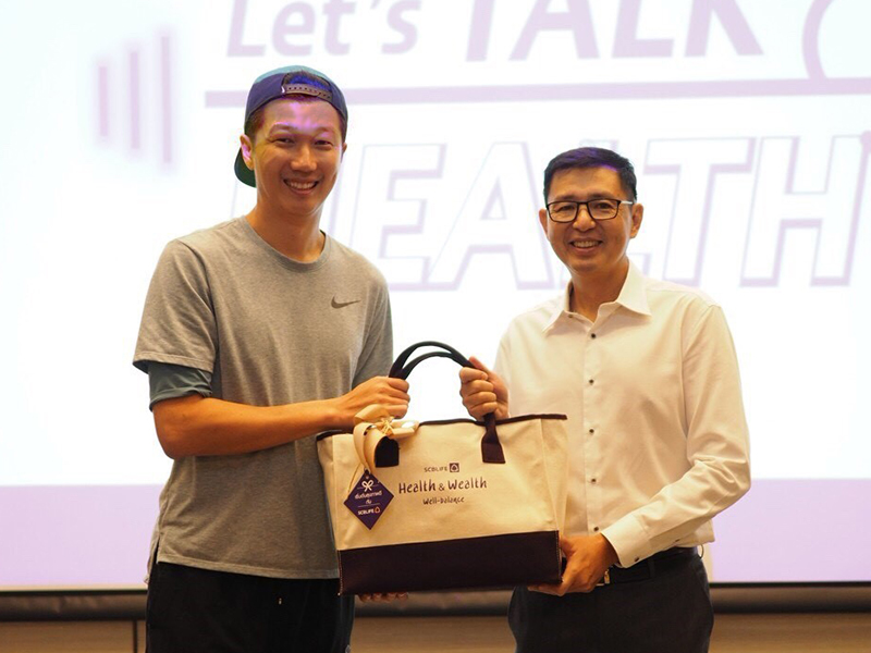 2 กันยายน 2562 : เสถียร เลี้ยววาริณ ประธานเจ้าหน้าที่บริหาร บริษัท ไทยพาณิชย์ประกันชีวิต จำกัด (มหาชน) หรือ SCBLIFE (ขวา) จัดกิจกรรม SCBLIFE Let’s Talk Health 5th ในหัวข้อ “รู้ลึกเรื่อง Run” โดยเชิญ นายสาธิก ธนะทักษ์ นักวิทยาศาสตร์การกีฬา และวิทยากรช่องไทยพีบีเอส (ซ้าย) หรือ โค้ชเป้ง เจ้าของเพจ “ez2fit” และเคยรับหน้าที่เป็นโค้ชให้ พี่ตูน บอดี้แสลม ในการวิ่งโครงการก้าวคนละก้าว มาแชร์ความรู้เกี่ยวกับเทคนิคการวิ่งต่าง ๆ ที่เป็นประโยชน์สำหรับพนักงานที่มีความสนใจ และเป็นนักวิ่งมือใหม่ ภายใต้คอนเซ็ปต์ The Greatest Wealth is Health ณ โรงแรมคอนราด เมื่อเร็วๆ นี้ ![]()