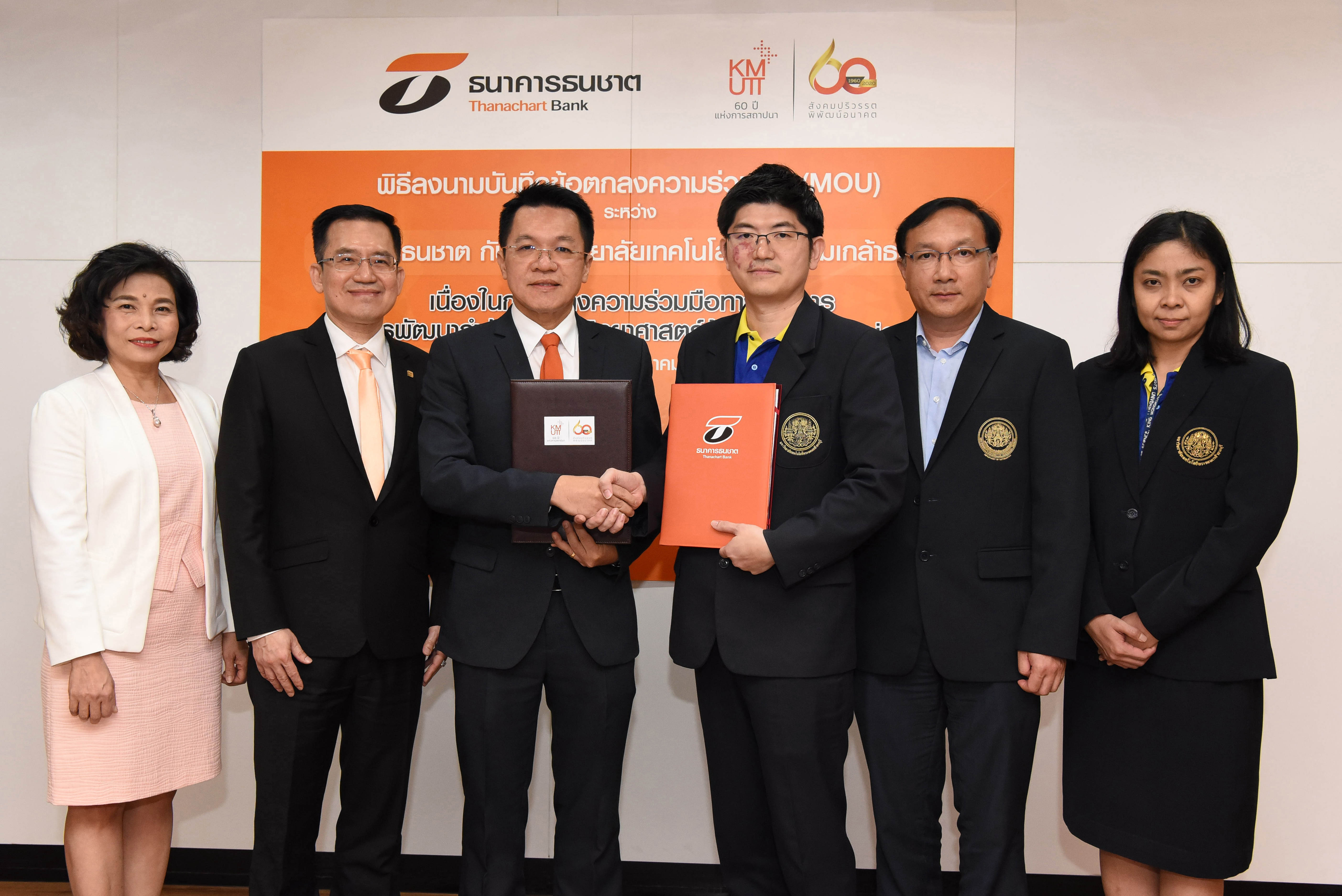 2 กันยายน 2562 : ประพันธ์ อนุพงษ์องอาจ (ที่ 3 จากซ้าย) ประธานเจ้าหน้าที่บริหารและกรรมการผู้จัดการใหญ่ ธนาคารธนชาต จำกัด (มหาชน) และ ผู้ช่วยศาสตราจารย์ ดร.ธีระเดช เจียรสุขสกุล (ที่ 4 จากซ้าย) คณบดีคณะวิทยาศาสตร์ มหาวิทยาลัยเทคโนโลยีพระจอมเกล้าธนบุรี (มจธ.) ลงนามบันทึกข้อตกลงความร่วมมือทางวิชาการด้านการพัฒนากำลังคนด้านวิทยาศาสตร์ข้อมูล (Data Science) ณ ห้องลานไพลิน อาคารเอ็มบีเค ทาวเวอร์ โดยมีคณะผู้บริหารธนาคารธนชาต และคณาจารย์จากมหาวิทยาลัยเทคโนโลยีพระจอมเกล้าธนบุรี ร่วมเป็นสักขีพยาน