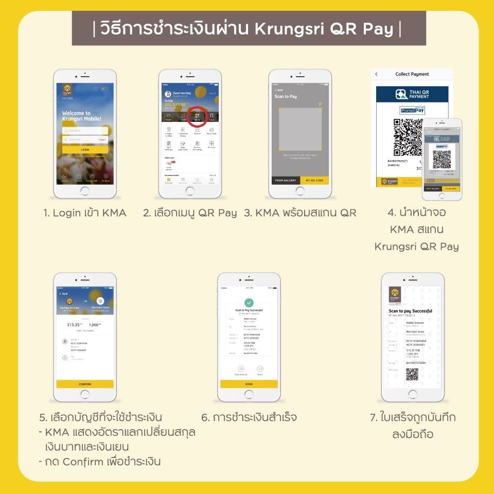 “นักท่องเที่ยวไทยในญี่ปุ่นจะชำระเงินค่าสินค้าหรือบริการต่างๆ ได้สะดวกขึ้นและง่ายขึ้น เพียงสแกน Thai QR Code ผ่านกรุงศรีโมบายแอปพลิเคชั่น หรือ KMA นอกจากนี้ กรุงศรียังได้ขยายแพลตฟอร์มนี้เพื่ออำนวยความสะดวกแก่นักท่องเที่ยวที่ใช้โมบายแอปพลิเคชั่นของธนาคารที่ร่วมโครงการ ประกอบด้วย ธนาคารกรุงเทพ ธนาคารไทยพาณิชย์ และธนาคารกสิกรไทย โดยในช่วงแรกนี้ ลูกค้าสามารถใช้โมบายแอปพลิเคชั่นของทั้ง 4 ธนาคารสำหรับการชำระเงินในห้างทาเคยะที่คนไทยคุ้นเคยในชื่อตึกม่วง แหล่งช้อปปิ้งชื่อดังของโตเกียวย่านอูเอโนะ เป็นที่แรกในประเทศญี่ปุ่น และด้วยความสัมพันธ์ทางการค้าที่แข็งแกร่งของมิตซูบิชิ ยูเอฟเจ นิคอส เราจะขยายการให้บริการไปยังห้างร้านอื่นๆ ที่เป็นที่นิยมของคนไทยต่อไป”