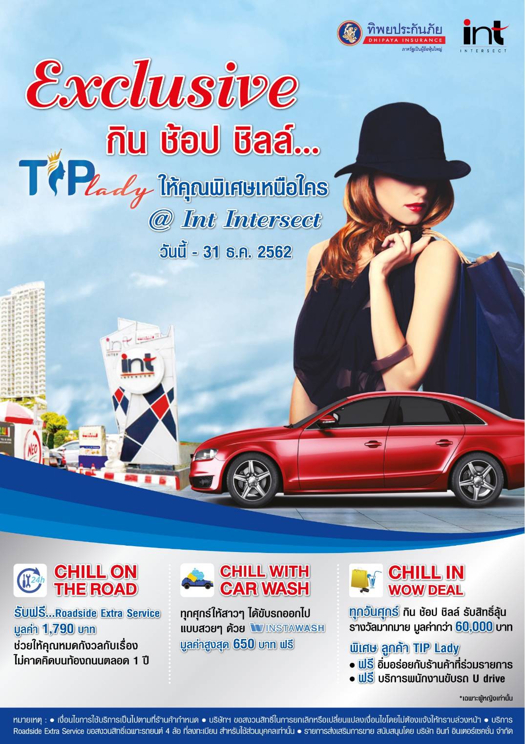 3 กันยายน 2562 : ทิพยประกันภัย ร่วมกับ อินท์ อินเตอร์เซค พระราม3 เลือกสรรสิทธิพิเศษมามอบให้สำหรับลูกค้า Tip Lady ให้มากกว่าประกันชั้น 1 จัดกิจกรรม “INT x TIP Lady กิน ช้อป ชิลล์ ให้คุณพิเศษเหนือใคร” อาทิ Chill On The Road ฟรีบริการช่วยเหลือฉุกเฉิน 24 ชม. , Chill With Car Wash รับบริการล้างรถฟรี , Chill In Wow Deal ลุ้นรางวัล มากมาย เพียงใช้จ่ายครบตามเงื่อนไข ที่ อินท์ อินเตอร์เซค พระราม3 ตั้งแต่วันนี้ถึง 31 ธ.ค. 62 ![]()