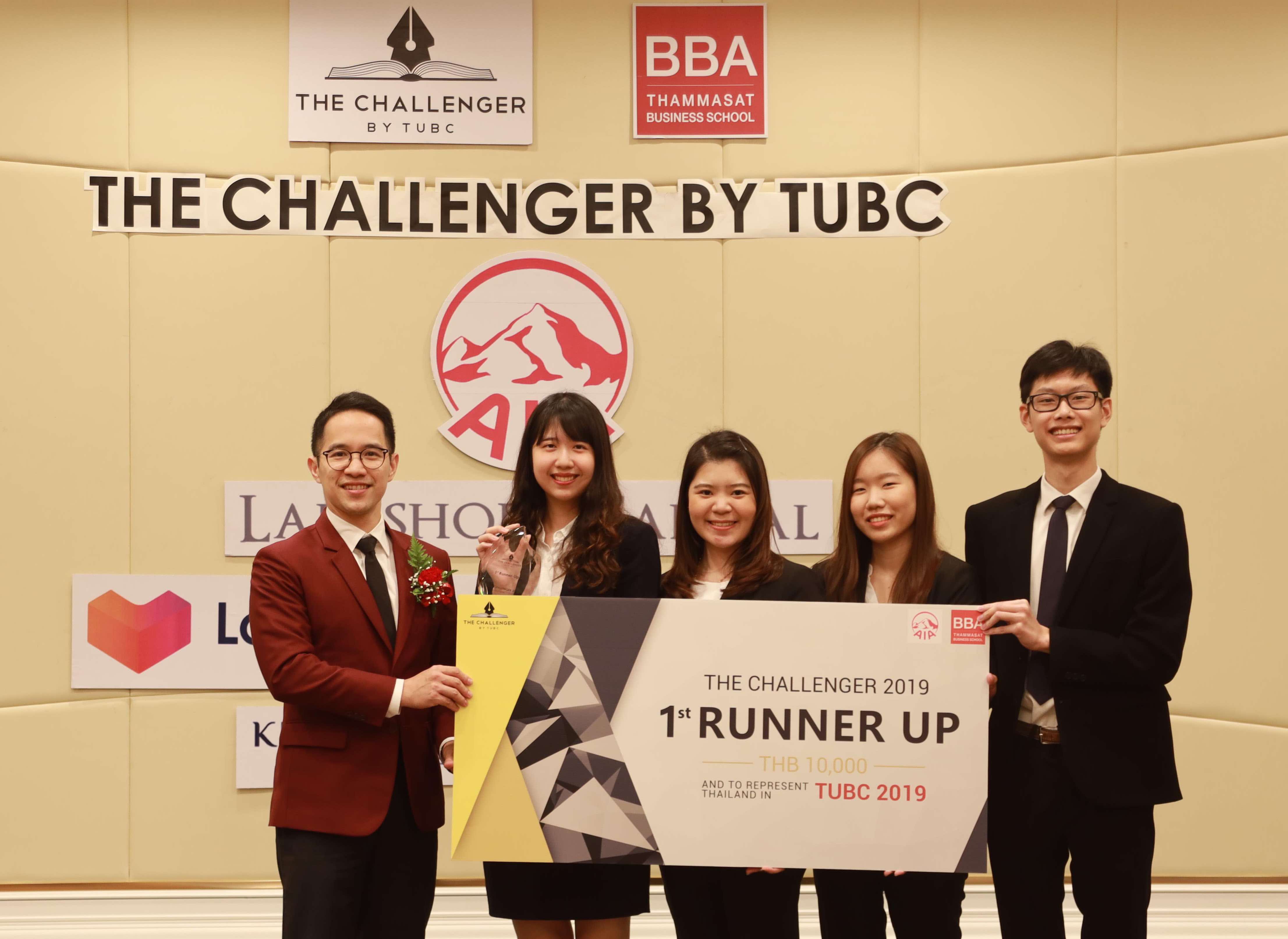 เอไอเอ ประเทศไทย ขอแสดงความยินดีกับทีมชนะเลิศ Cha(lle)nger ที่ได้มีการนำเสนออย่างเป็นมืออาชีพและมีการวิเคราะห์ปัญหาได้อย่างตรงประเด็น รวมถึงนำเสนอแนวคิดใหม่ๆ เพื่อให้ผลิตภัณฑ์ประกันชีวิตและการบริการสามารถตอบโจทย์ไลฟ์สไตล์ของคนยุคใหม่เจเนอเรชั่น ซี (Generation Z) และขอแสดงความยินดีกับทีมรองชนะเลิศอันดับ 1 ทีม Double Positive Consulting ทีมรองชนะเลิศอันดับ 2 ทีม Meow Quartet และทีมรองชนะเลิศอันดับ 3 Achilleus Consulting ![]()