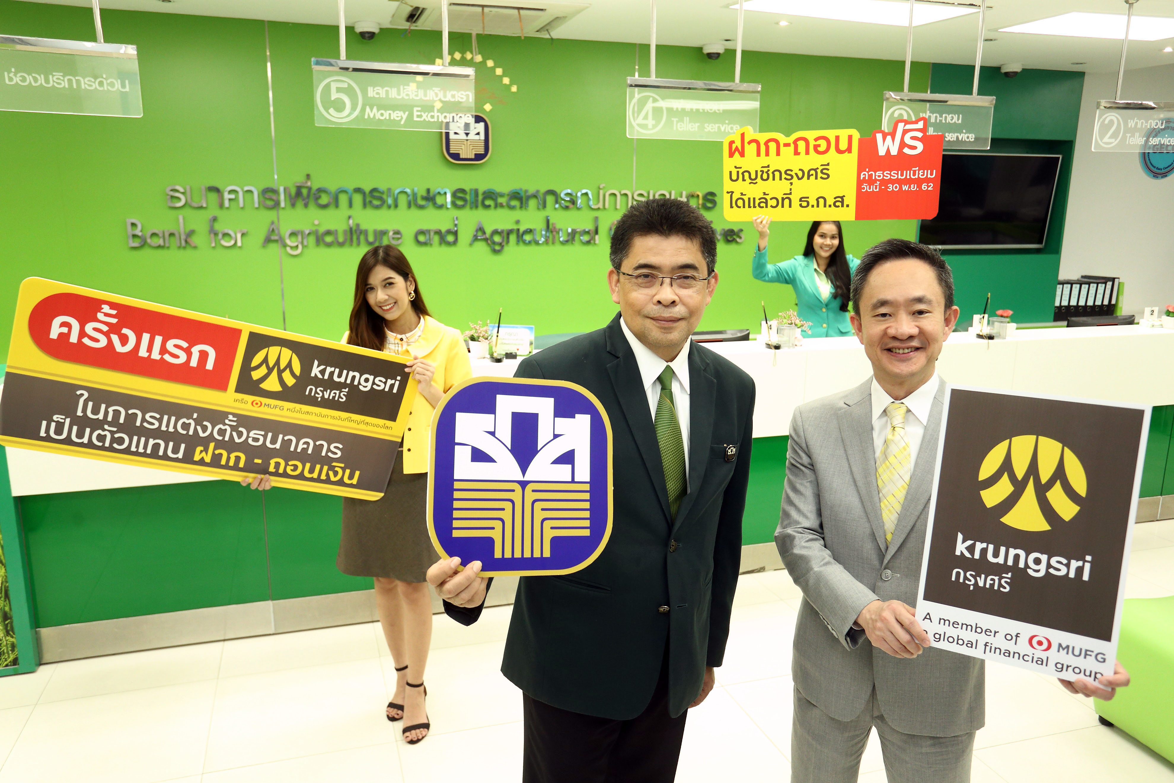 โดย ธ.ก.ส. เป็นพันธมิตรรายล่าสุดที่ธนาคารได้แต่งตั้งเป็นตัวแทนธนาคารในการรับ ฝาก-ถอนเงินบัญชีกรุงศรี ซึ่งกรุงศรีได้พัฒนาแพลตฟอร์มการให้บริการของธนาคาร และในช่วงแรกนี้ได้ติดตั้งไว้ที่สาขาของ ธ.ก.ส. ที่ร่วมโครงการจำนวน 50 สาขาทั่วประเทศ โดยลูกค้าที่ต้องการทำธุรกรรมสามารถแจ้งเจ้าหน้าที่ ธ.ก.ส. เพื่อใช้บริการ”
