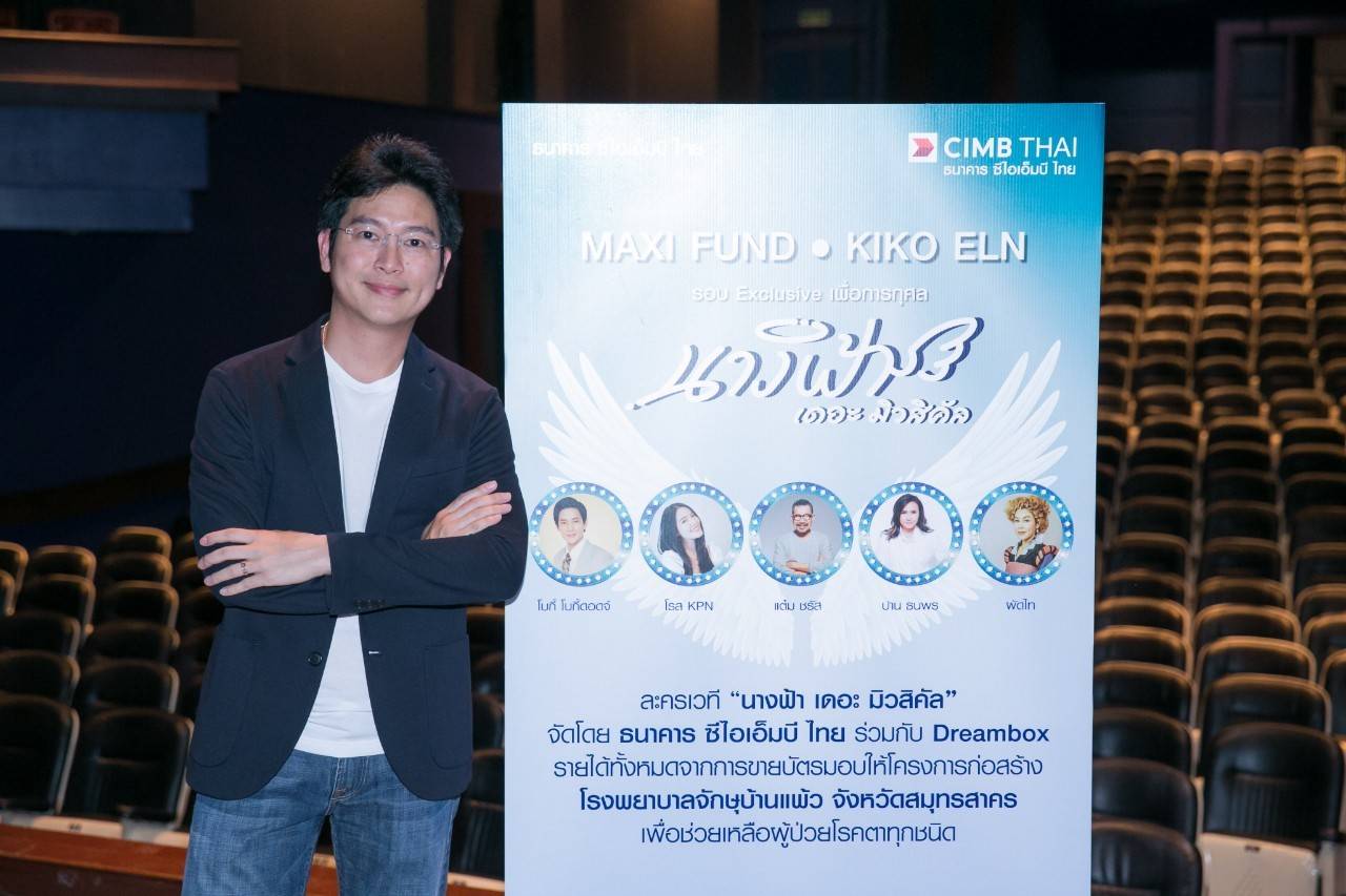 9 กันยายน 2562 : ภูดินันท์ เศรษฐนันท์ ผู้ช่วยกรรมการผู้จัดการใหญ่ ธุรกิจผลิตภัณฑ์การเงิน ธนาคาร ซีไอเอ็มบี ไทย พร้อมด้วย วาดฝัน คุณาวงศ์ Acting Coach แห่ง Dreambox เปิดโอกาสให้เด็กๆ ได้ร่วมแสดงละครเวทีการกุศล “นางฟ้า เดอะ มิวสิคัล” รอบ Exclusive โดยทีมผลิตภัณฑ์ MAXI FUND ธนาคาร ซีไอเอ็มบี ไทย ร่วมกับ Dreambox นำแสดงโดย แต๋ม ชรัส, ปาน ธนพร, ผัดไท, โรส KPN, โบกี้ โบกี้ดอจ, เนส AF จัดขึ้นวันที่ 12 ก.ย.นี้ ที่ M-Theatre ถ.เพชรบุรีตัดใหม่