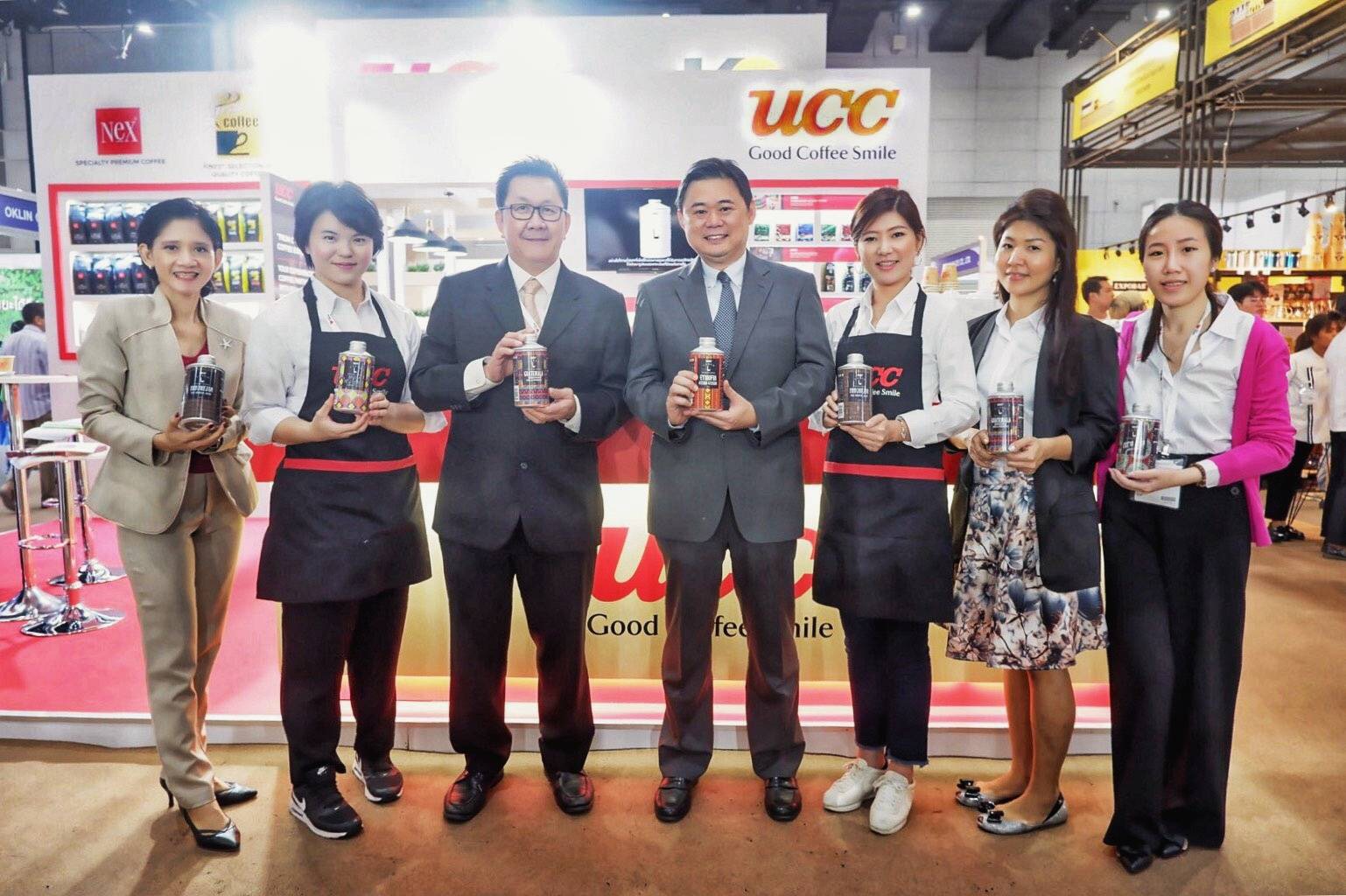 10 กันยายน 2562 : โนบูโอะ คิโนะชิตะ (กลาง) ประธาน บริษัท ยูซีซี อูเอะชิม่า คอฟฟี่ (ประเทศไทย) จำกัด ร่วมกับ มีชัย อมรพัฒนกุล (ที่สามจากซ้าย) กรรมการผู้จัดการ บริษัท เคทู จำกัด ร่วมแสดงนวัตกรรมการผลิตกาแฟมาตรฐานทันสมัยที่สุดจากยูซีซี ญี่ปุ่น มาตรฐานการบริการจากยูซีซี อังกฤษ พร้อมผลิตภัณฑ์กาแฟจากสวนกาแฟในแหล่งปลูกที่มีชื่อเสียงของโลก อาทิ กาแฟบลูเมาเท่นในประเทศจาไมก้า กาแฟโคน่าในฮาวาย