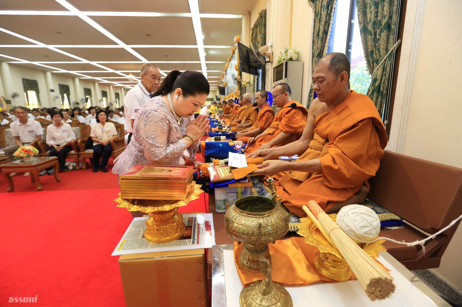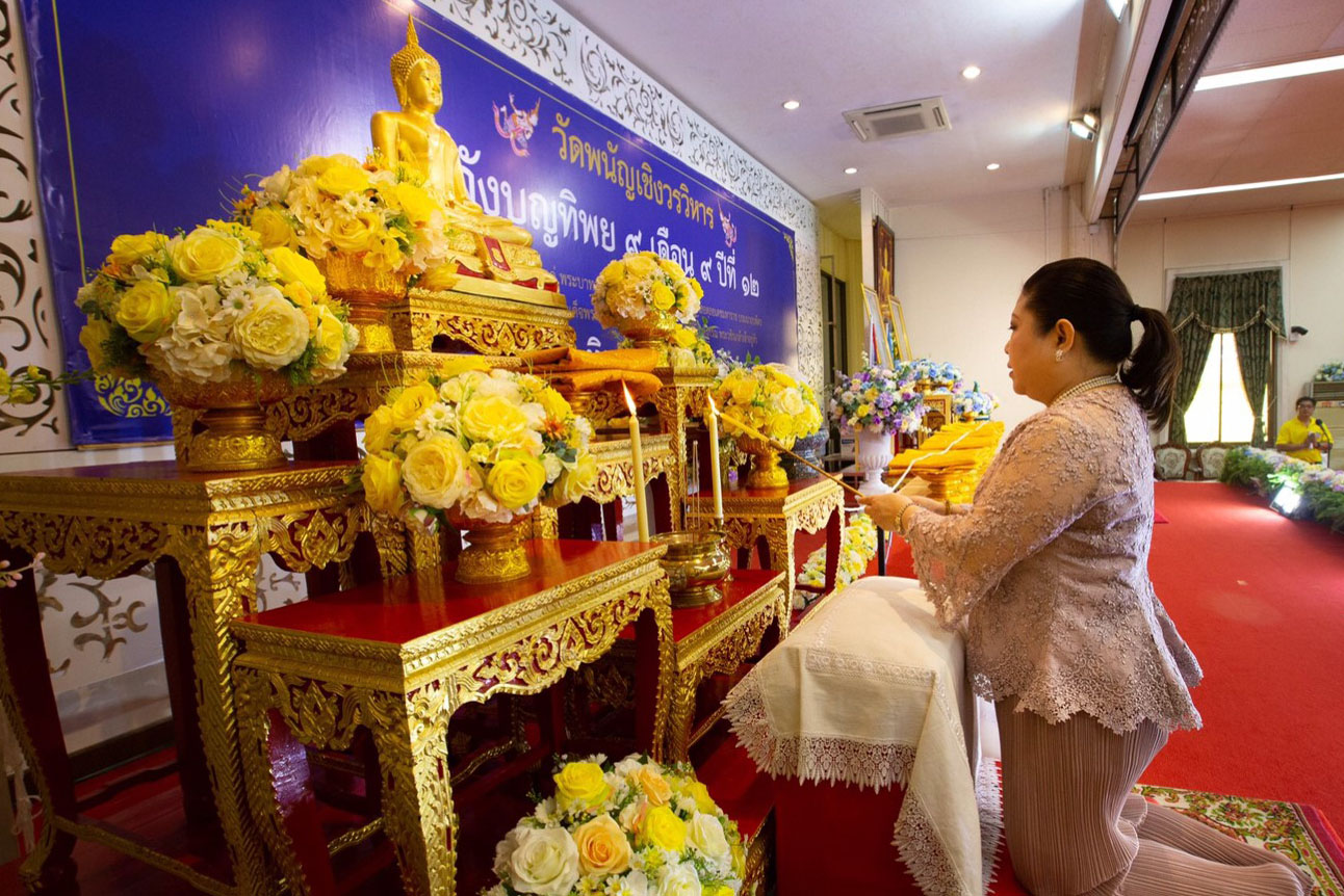 โดยนิมนต์ พระธรรมรัตนมงคล เจ้าคณะจังหวัดพระนครศรีอยุธยา เจ้าอาวาสวัดพนัญเชิงวรวิหาร มาเป็นประธานสงค์ พระเมธีวราภรณ์ รองเจ้าคณะจังหวัดพระนครศรีอยุธยา รองเจ้าอาวาสวัดพนัญเชิงวรวิหาร และพระภิกษุสงฆ์ จำนวน 9 รูป เจริญพระพุทธมนต์ พร้อมร่วมกันถวายผ้าห่มองค์ “พระพุทธไตรรัตนนายก” ความยาว 9.99 เมตร จำนวน 10 ผืน และนั่งสมาธิ หลังจากเสร็จพิธี จึงได้ถวายภัตตาหาร เครื่องสังฆทานและถวายจตุปัจจัยไทยธรรมแด่พระภิกษุสงฆ์ พร้อมกันนี้ยังได้ร่วมกันปล่อยปลามหากุศล จำนวน 599 กิโลกรัม ลงแม่น้ำเจ้าพระยา เพื่อเป็นการไถ่ชีวิตปลาที่จะถูกฆ่าด้วย