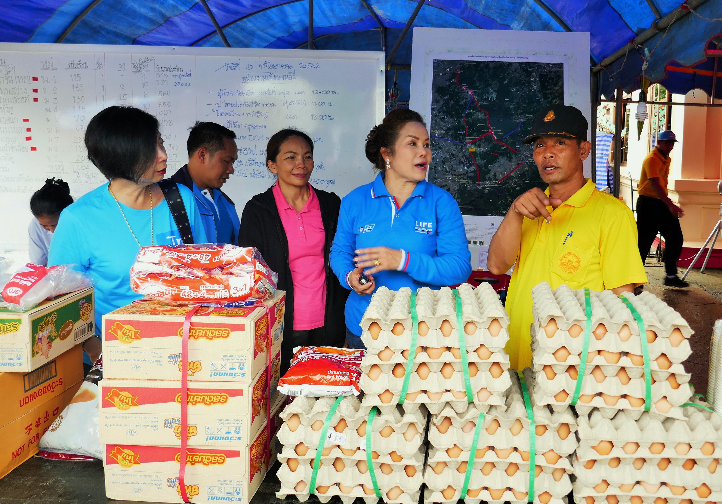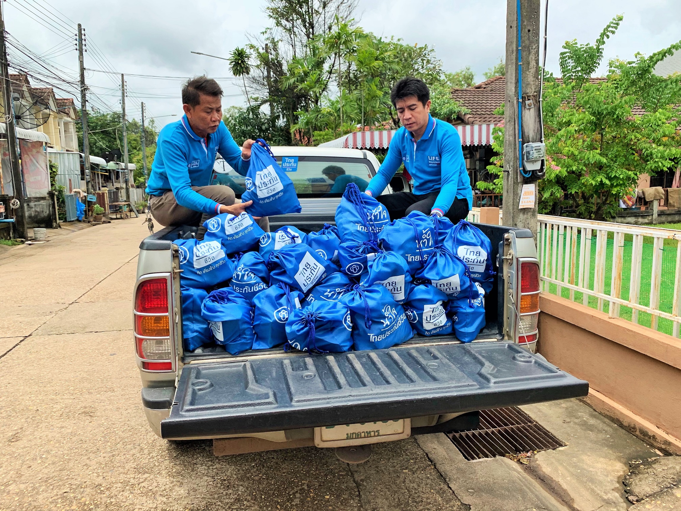 เบื้องต้น จิตอาสาไทยประกันชีวิต ได้จัดทำถุงยังชีพ จำนวน 650 ถุง รวมมูลค่า 325,000 บาท นำไปส่งมอบผ่านมณฑลทหารบกที่ 23 ค่ายศรีพัชรินทร จังหวัดขอนแก่น จำนวน 500 ถุง เพื่อช่วยเหลือผู้ประสบภัยในพื้นที่จังหวัดขอนแก่น กาฬสินธุ์ และร้อยเอ็ด สำหรับถุงยังชีพอีก 150 ถุง ส่งมอบผ่านนายกเทศมนตรีเมืองมุกดาหาร เพื่อบรรเทาความเดือนร้อน และส่งกำลังใจให้กับพี่น้องชาวมุกดาหาร