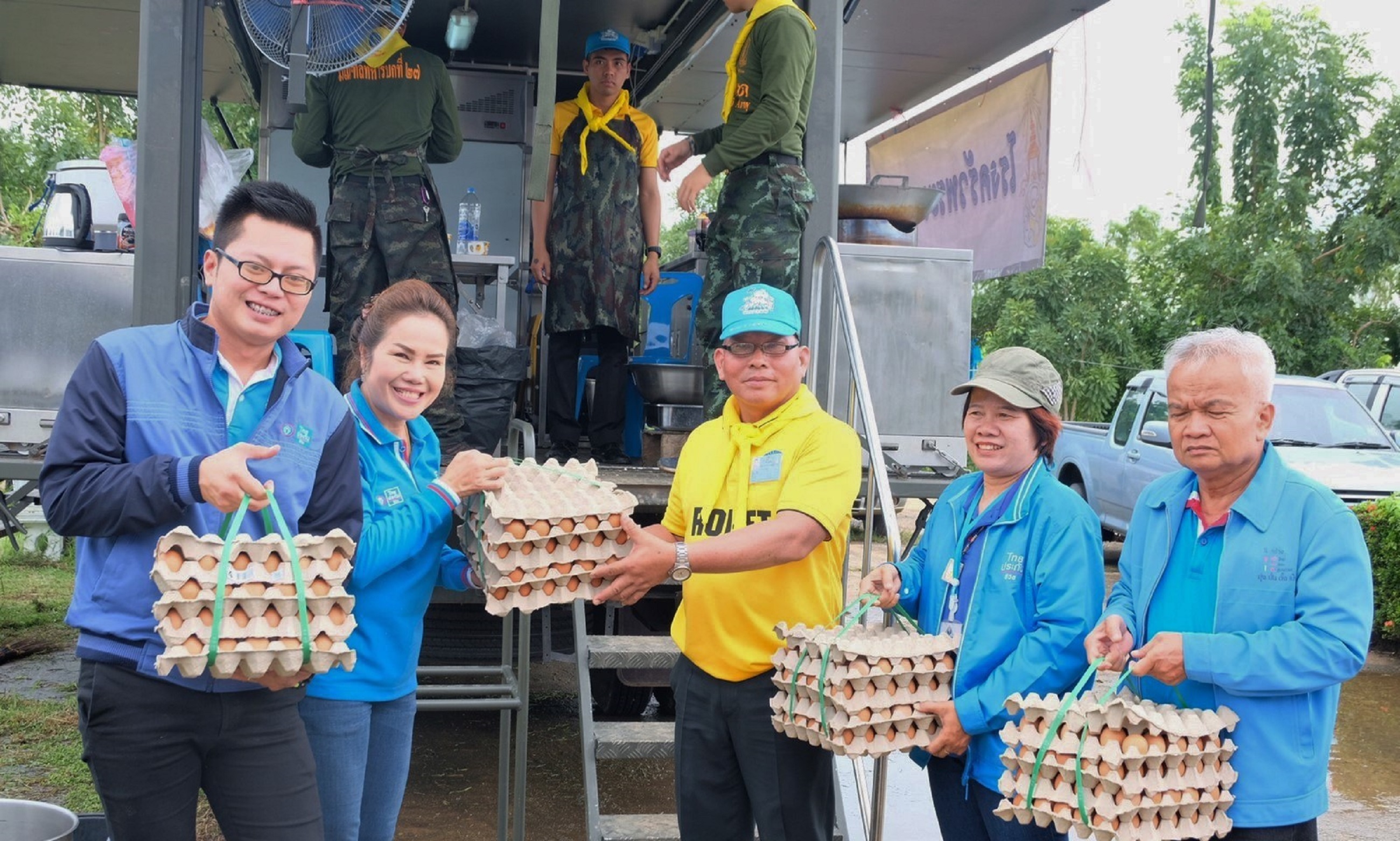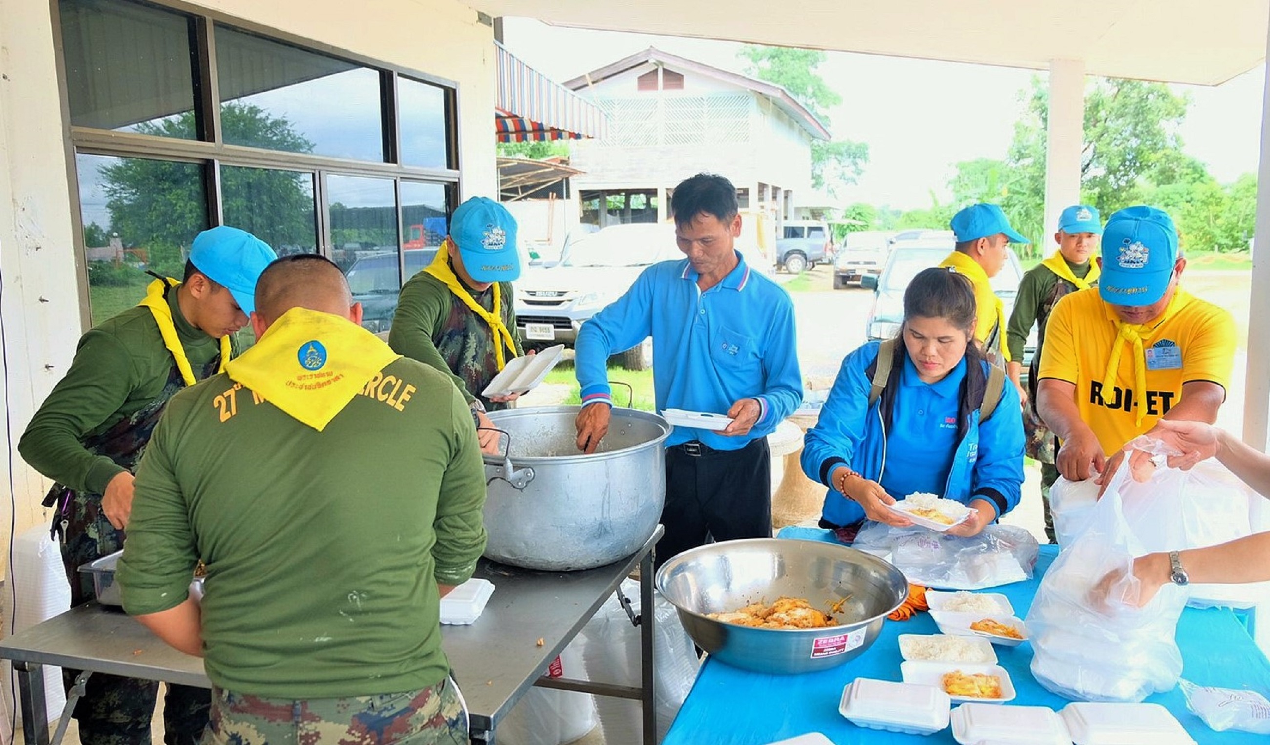 นอกจากนั้น ฝ่ายขายจิตอาสาในพื้นที่ ยังได้ประสานงานกับมณฑลทหารบกที่ 27 ค่ายประเสริฐสงคราม จังหวัดร้อยเอ็ด ร่วมบริจาคข้าวสาร อาหารสด อาหารแห้ง น้ำดื่ม พร้อมร่วมทำอาหาร ส่งมอบให้แก่ศูนย์ช่วยเหลืออุทกภัยและโรงครัวพระราชทาน เพื่อให้ความช่วยเหลือชาวบ้านพื้นที่ตำบลนาแซง ตำบลนางาม ตำบลบึงเกลือ ในอำเภอเสลภูมิ จังหวัดร้อยเอ็ด