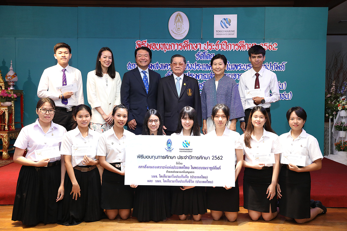 13 กันนายน 2562 : ฮิโระโนะริ คิริว (ที่3 จากซ้าย) ประธานเจ้าหน้าที่บริหาร บมจ.โตเกียวมารีนประกันภัย (ประเทศไทย) ร่วมกับ บมจ.โตเกียวมารีนประกันชีวิต (ประเทศไทย) มอบทุนการศึกษาประจำปี พ.ศ.2562 แก่เด็กนักเรียนสังกัดสภาสังคมสงเคราะห์แห่งประเทศไทย ในพระบรมราชูปถัมภ์ จำนวนทั้งสิ้น 41 ทุน โดยมี พลเอกสิงหา เสาวภาพ (ที่3 จากขวา) ประธานสภาสังคมสงเคราะห์ฯ ร่วมเป็นประธานในพิธี ณ ห้องประชุมชั้น 3 ตึกนวมหาราช สภาสังคมสงเคราะห์แห่งประเทศไทยฯ เมื่อเร็วๆ นี้ ![]()