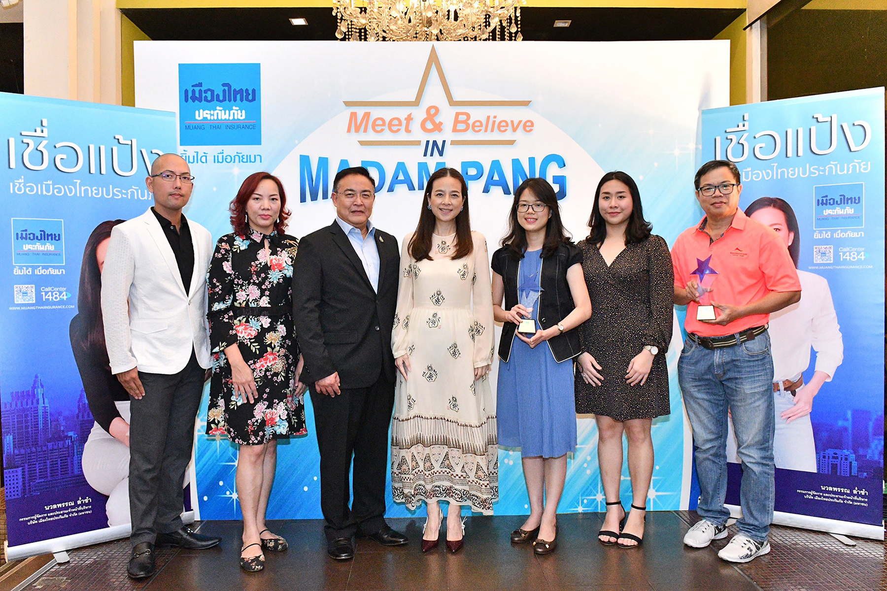 16 กันยายน 2562 : บริษัท เมืองไทยประกันภัย จำกัด (มหาชน) โดย นวลพรรณ ล่ำซำ กรรมการผู้จัดการ และประธานเจ้าหน้าที่บริหาร มอบโล่รางวัลและประกาศนียบัตรตัวแทนรายย่อย ผู้ผลิตผลงานดีเด่นให้แก่ กัณฑพร ศิริวรศิลป์ นางสาวธัญญ์นรี พูลสวัสดิ์, วสุ ฉันทนาวราพิชญ์, จินดา โต๊ะสุวรรณวนิช และ อภิรัตน์ ใจเกษม โดยมี อภิธร อมาตยกุล รองกรรมการผู้จัดการ ร่วมเป็นสักขีพยาน ณ ร้านทีเฮาส์ วิภาวดี เมื่อเร็วๆ นี้ ติดตามข่าวสารเมืองไทยประกันภัยได้ที่เว็บไซต์ www.muangthaiinsurance.com ![]()