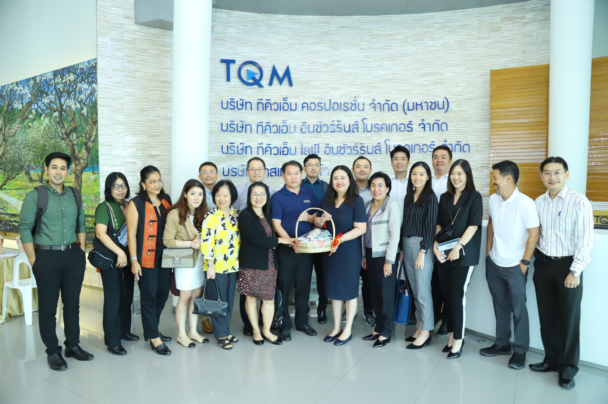 16 กันยายน 2562 : TQM เปิดบ้าน…ดร.นภัสนันท์ พรรณนิภา ประธานเจ้าหน้าที่บริหาร (ลำดับที่ 8 จากซ้าย) และ นางสาวสมพร อำไพสุทธิพงษ์ ประธานบริหารสายงานบัญชีการเงิน (ลำดับที่ 9 จากซ้าย) บมจ.ทีคิวเอ็ม คอร์ปอเรชั่น (TQM) โบรคเกอร์ประกันภัยรายใหญ่ของไทย เปิดบ้านต้อนรับกลุ่ม TOISC 6.5 High NetWorth BOI พร้อมอัพเดทข้อมูลผลการดำเนินงาน รวมถึงโปรเจ็คใหม่ๆ ทั้ง TQM for Lady, Financial Broker และ Insurance shop เมื่อเร็ว ๆ นี้ ![]()