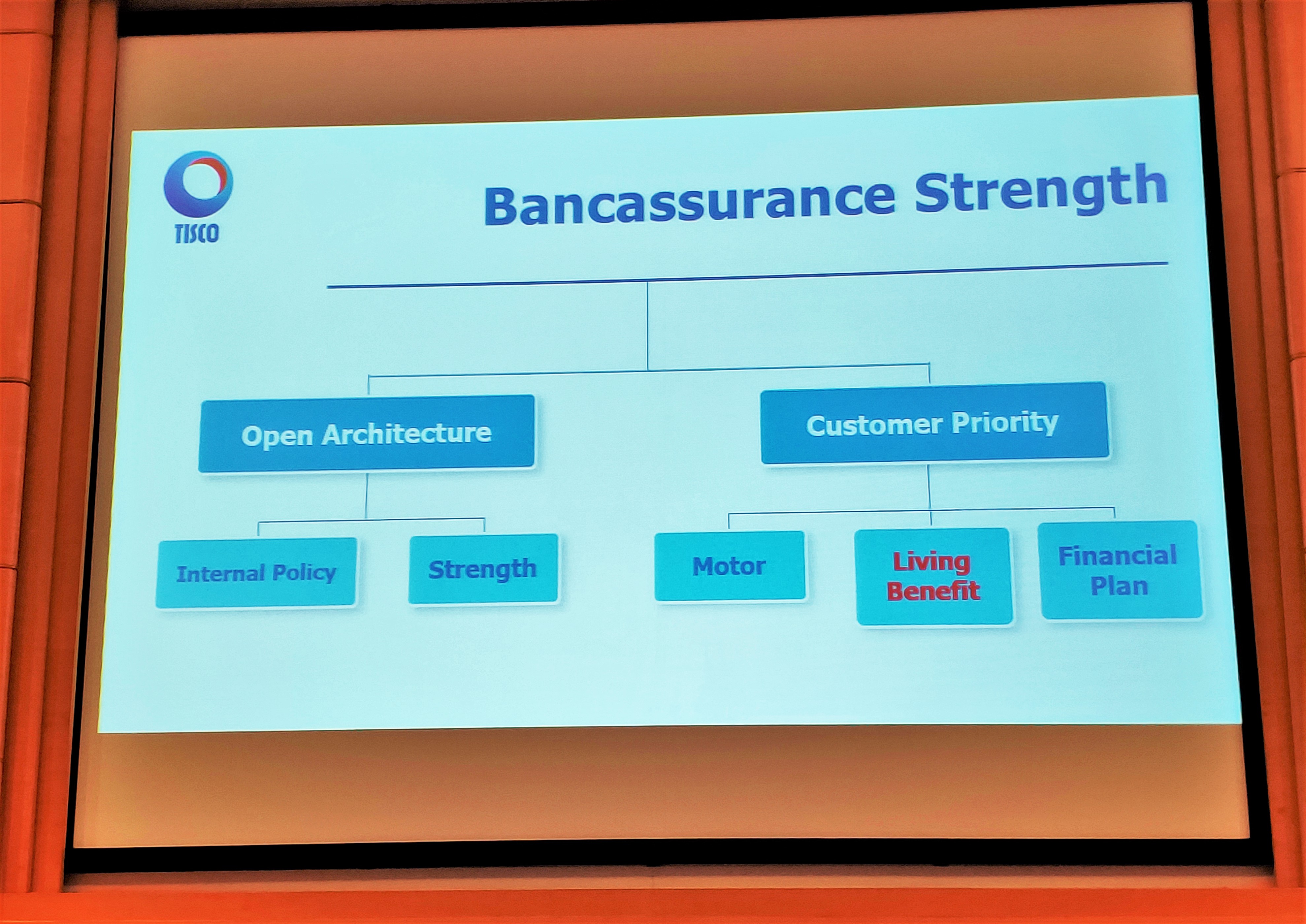 ปัจจุบันฐานลูกค้าบุคคลประมาณ 20,000 คน คิดเป็นมูลค่า 2 ล้านบาท แต่วันนี้ตั้งเป้าหมายจะขยายการบริการประกันสุขภาพให้มากขึ้นผลักดันให้ได้ 1 แสนราย รวมถึงจะขยายไปสู่ตลาดทั่วไปให้มากขึ้น โดยสัดส่วนการประกันสุขภาพของทิสโก้ มีประมาณ 10% ในจำนวนนี้เป็นประกันชีวิต 10-25% และกลุ่ม Non-Motor 65% จากการโฟกัสการประกันสุขภาพ คิดว่าในอีก 3 ปีข้างหน้าสัดส่วนประกันสุขภาพจะเติบโตไปยัง 20% ของพอร์ทโดยรวมของธนาคาร