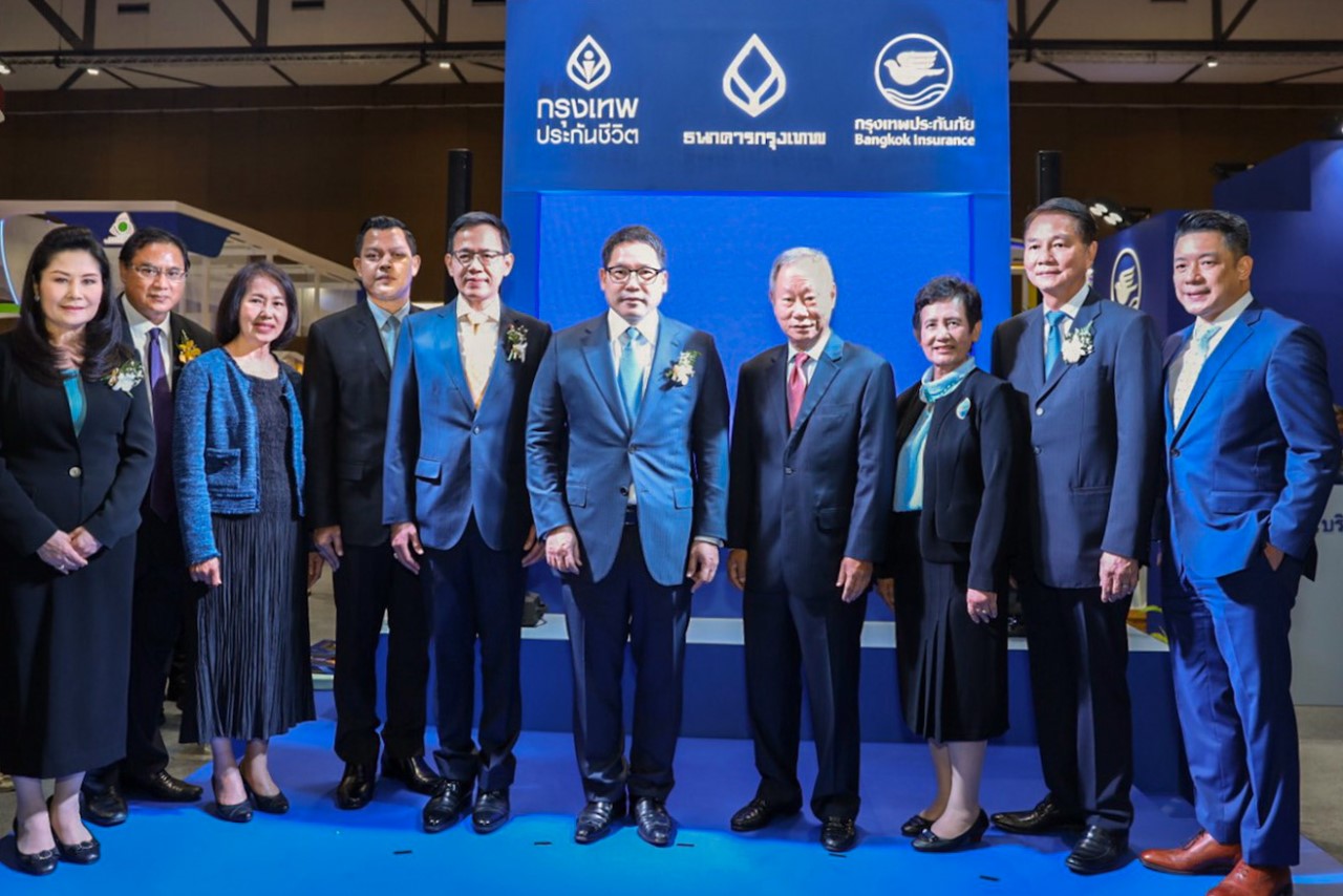 โดยได้รับเกียรติจาก นายอุตตม สาวนายน (ที่ 5 จากขวา) รัฐมนตรีว่าการกระทรวงการคลัง ดร.สุทธิพล ทวีชัยการ (ที่ 5 จากซ้าย) เลขาธิการ สำนักงานคณะกรรมการกำกับและส่งเสริมการประกอบธุรกิจประกันภัย (คปภ.) นายชัย โสภณพนิช (ที่ 4 จากขวา) ประธานกรรมการ บริษัท กรุงเทพประกันภัย จำกัด (มหาชน) นางสาวพจณี คงคาลัย (ที่ 3 จากซ้าย) ผู้ช่วยผู้จัดการใหญ่ ธนาคารกรุงเทพ จำกัด (มหาชน) และหม่อมหลวงจิรเศรษฐ ศุขสวัสดิ์ (ที่ 2 จากซ้าย) กรรมการผู้จัดการใหญ่ บริษัท กรุงเทพประกันชีวิต จำกัด (มหาชน) ร่วมพิธีเปิดบูทของ 3 พันธมิตร โดยมีผู้บริหารของกรุงเทพประกันภัย ร่วมในพิธี เมื่อวันที่ 27 กันยายน 2562 ณ ฮอลล์ 5 อิมแพ็ค เมืองทองธานี ![]()