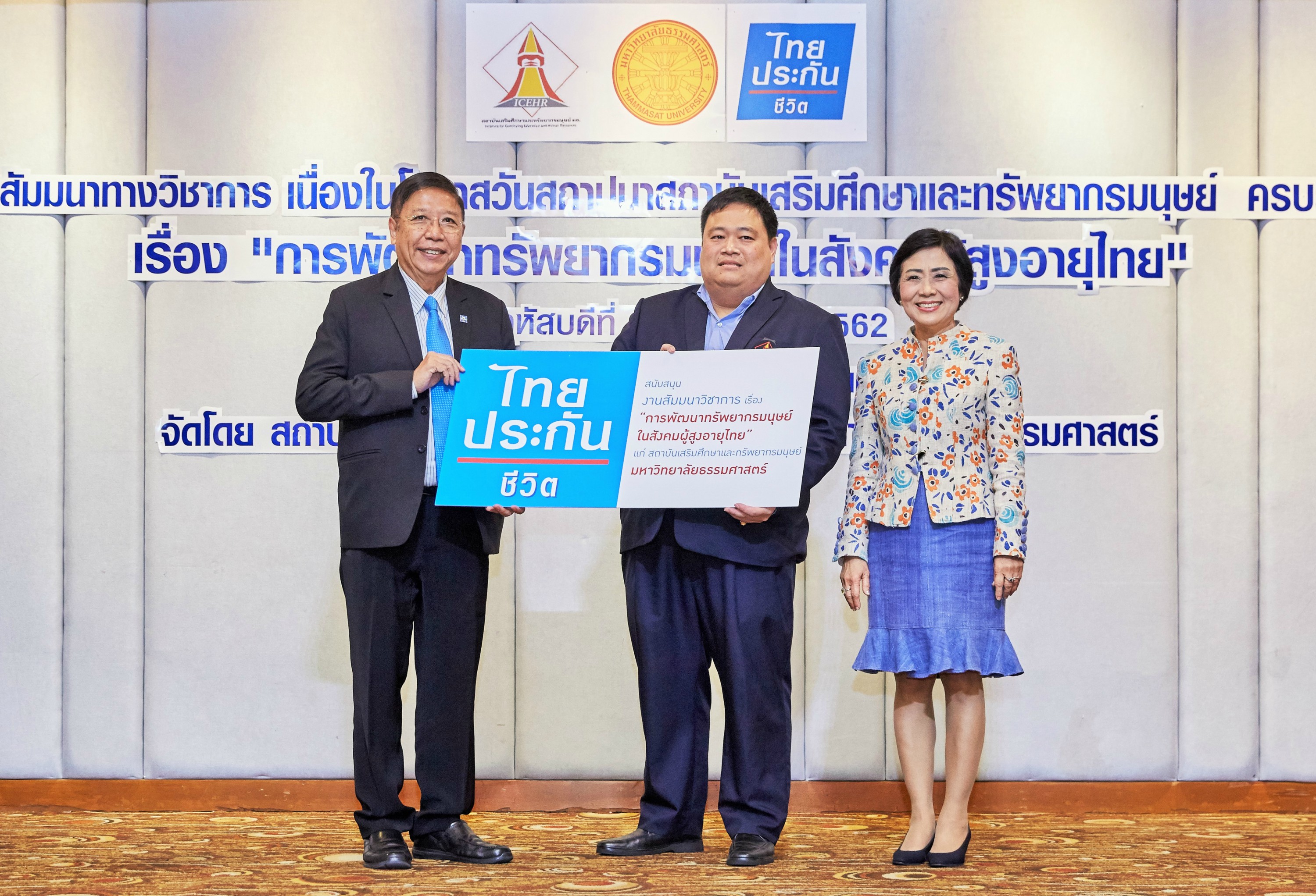 27 กันยายน 2562 : ผศ.ดร.ศุภชัย ศรีสุชาติ ผู้อำนวยการสถาบันเสริมศึกษาและทรัพยากรมนุษย์ มหาวิทยาลัย ธรรมศาสตร์ รับมอบเงิน จำนวน 50,000 บาท จากนายทำนุ บุญประกอบ Managing Executive Officer บริษัท ไทยประกันชีวิต จำกัด (มหาชน) เพื่อสนับสนุนการสัมมนาทางวิชาการ เพื่อสร้างความรู้ ความเข้าใจ และเตรียมความพร้อมทางด้านสถานการณ์สังคมผู้สูงอายุของไทย เนื่องในโอกาสวันสถาปนา สถาบันเสริมศึกษาและทรัพยากรมนุษย์ มหาวิทยาลัยธรรมศาสตร์ ณ โรงแรมเจ้าพระยาปาร์ค กรุงเทพฯ ![]()