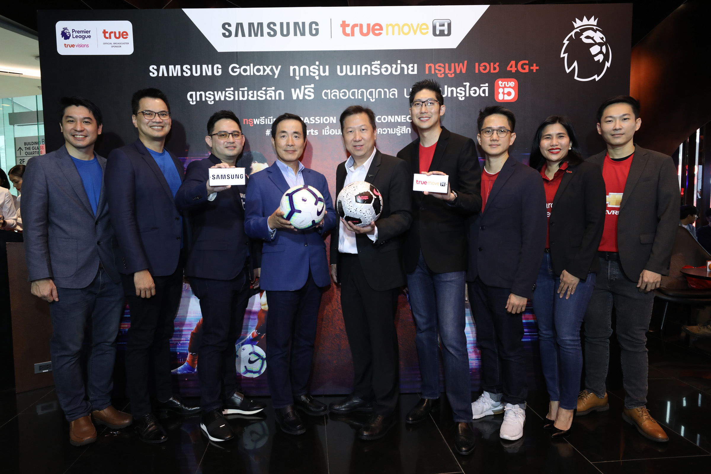 3 ตุลาคม 2562 : ทรูมูฟ เอช โดย ดร.กิตติณัฐ ทีคะวรรณ (ที่ 5 จากขวา) กรรมการผู้จัดการใหญ่ (ร่วม) และ จัสติน อัง (ที่ 4 จากขวา)รองหัวหน้าคณะผู้บริหารกลุ่ม ด้านการพาณิชย์ บมจ. ทรู คอร์ปอเรชั่น ผนึกกำลัง ซัมซุง โดย ซอง ฮวัน คิม (ที่ 4 จากซ้าย) ประธาน และ วรวุฒิ พงศ์ชินพัค (ที่ 3 จากซ้าย) ผู้อำนวยการฝ่ายการตลาด ธุรกิจโทรคมนาคมและไอที บริษัท ไทยซัมซุง อิเลคโทรนิคส์ จำกัด จัดงานแถลงข่าวแคมเปญใหญ่แห่งปี “TrueMove H x Samsung EPL Exclusive” เอาใจผู้ใช้ซัมซุง กาแลคซี่ ทุกรุ่น เมื่อเปิดซิมทรูมูฟ เอช ใหม่แบบเติมเงิน รับสิทธิ์ดูฟรีฟุตบอลพรีเมียร์ลีกอังกฤษ ทุกแมตซ ตลอดฤดูกาล 2019/2020 บนแอปทรูไอดี