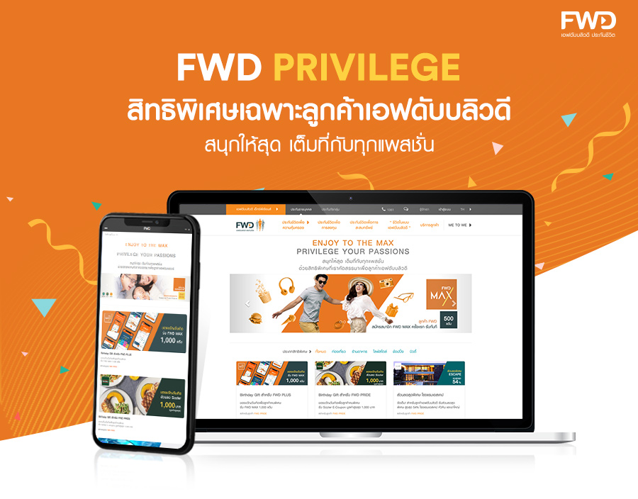 3 ตุลาคม 2562 : บริษัท เอฟดับบลิวดี ประกันชีวิต จำกัด (มหาชน) เปิดตัว FWD PRIVILEGE สิทธิพิเศษสำหรับลูกค้าเอฟดับบลิวดี เพื่อเป็นการขอบคุณลูกค้าเอฟดับบลิวดี ที่มอบความไว้วางใจให้เราดูแล เราขอมอบสิทธิพิเศษให้กับลูกค้าที่เราคัดสรรมาเพื่อลูกค้าเอฟดับบลิวดีให้เต็มที่ได้กับทุกแพสชั่น ทุกไลฟ์สไตล์ ด้วยสิทธิพิเศษต่างๆ ไม่ว่าจะเป็นของขวัญในเดือนเกิด และสิทธิประโยชน์อื่นๆ