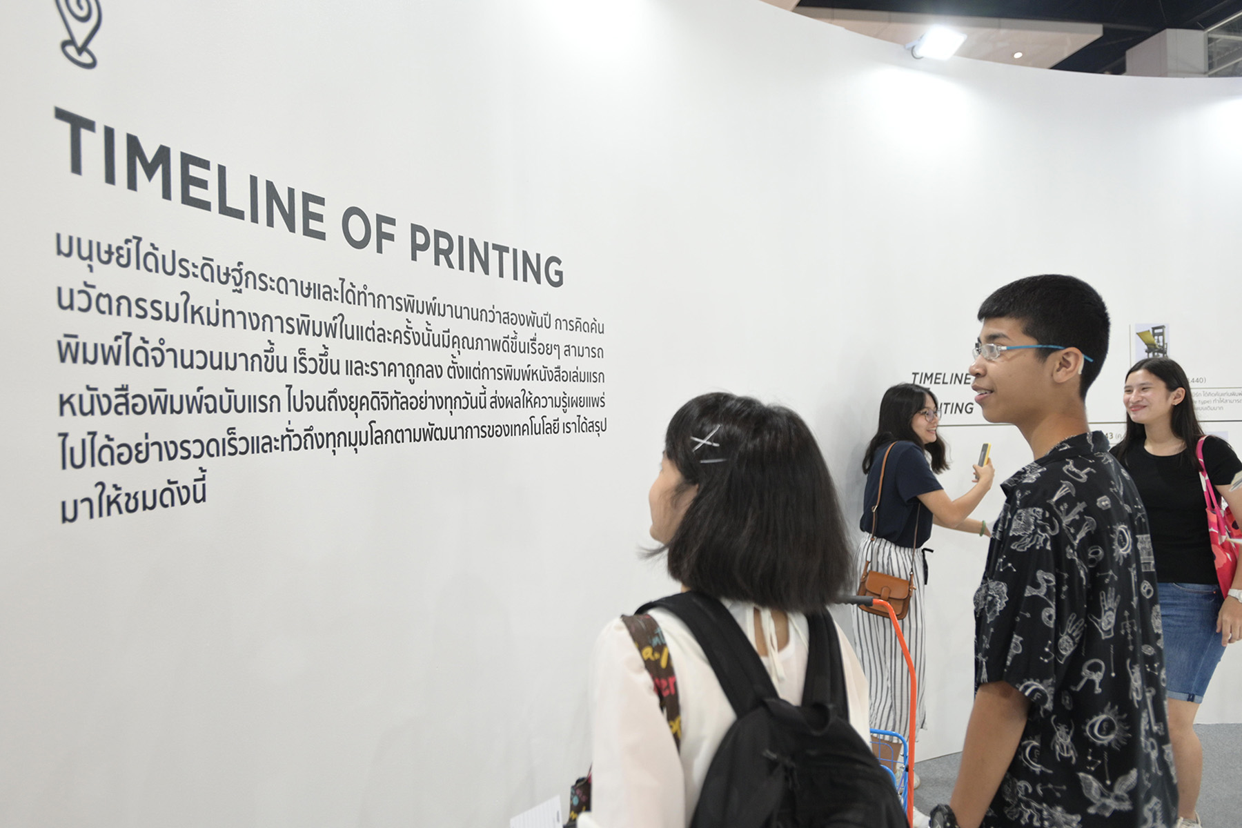 “ห้อง Timeline” จัดแสดงข้อมูลวิวัฒนาการการอ่านแต่ละยุคสมัย “ห้อง Documentary” วิวัฒนาการของการอ่านที่เปลี่ยนแปลงจากการเข้ามาของเทคโนโลยี ซึ่งนำไปสู่การอ่านในรูปแบบใหม่ๆ และสุดท้ายกับ “ห้องจัดแสดงงานของผู้ร่วมออกบูธ (showcase)” ที่จะรวบรวมสื่อที่เข้ากับยุคสมัยเอาไว้ ไม่ว่าจะเป็นหนังสือ AR หนังสือ pop-up ที่สื่อให้เห็นถึงการนำคอนเทนต์ที่มีอยู่มาผสมผสานกับสื่อที่หลากหลาย หรือประยุกต์ใช้กับเทคโนโลยี