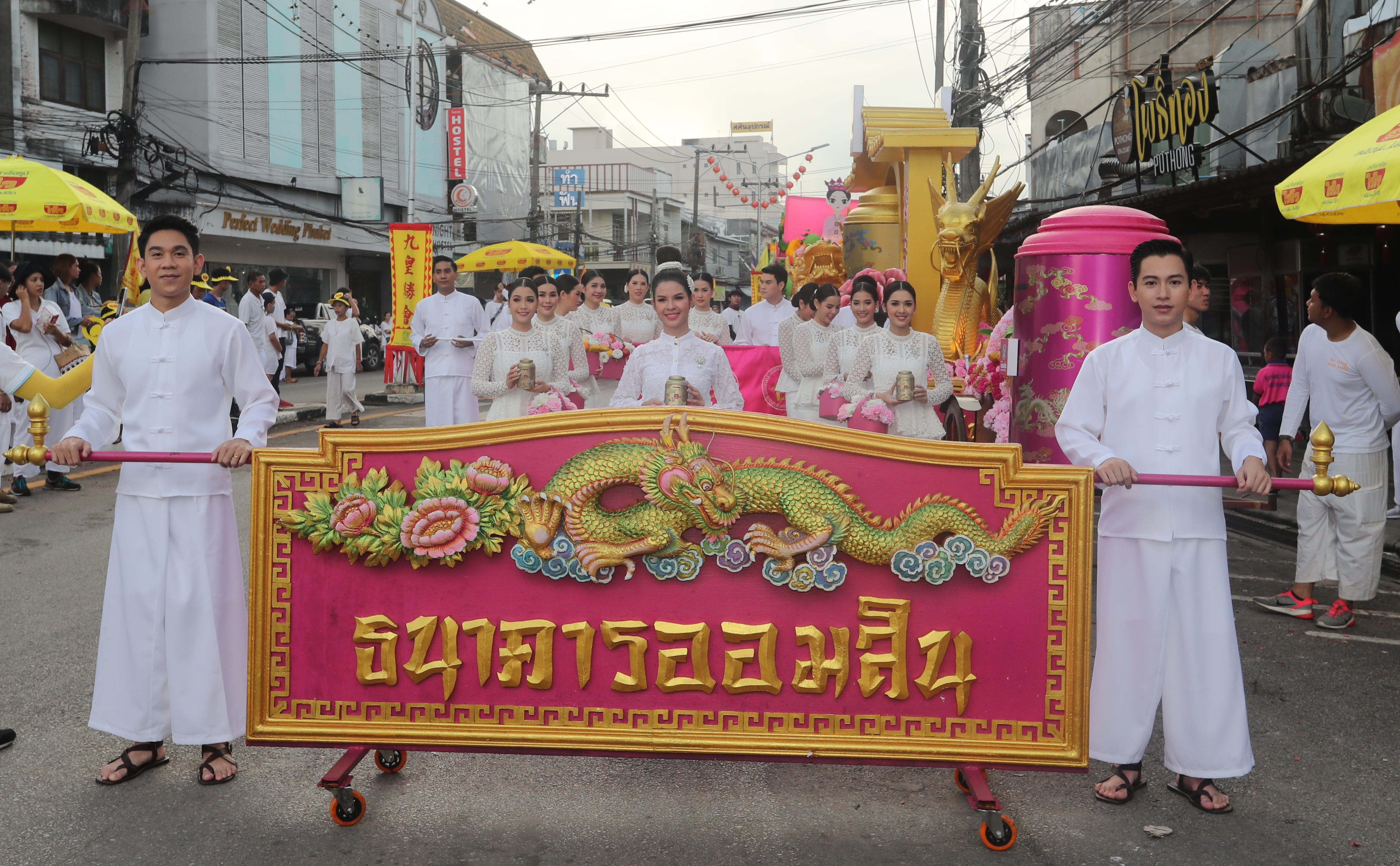 พร้อมร่วมพิธีรับขบวนแห่พระของศาลเจ้าบางเหนียว บริเวณด้านหน้าธนาคารออมสินสาขาภูเก็ต และธนาคารยังได้ตกแต่งสถานที่บริเวณวงเวียนสุรินทร์ (หอนาฬิกา), บริเวณหน้าธนาคารออมสินสาขาภูเก็ต บริเวณสี่แยกธนาคารชาร์เตอร์ให้สวยงาม จัดทำกระปุกออมสินใบใหญ่ รูปทรง “ถ้ำชา” เพื่อให้ผู้เข้าร่วมกิจกรรมและประชาชนไปได้ถ่ายภาพบันทึกความทรงจำ อันสะท้อนอัตลักษณ์ประเพณีที่สำคัญของชาวภูเก็ต พร้อมมอบกระปุกออมสิน “ถ้ำชา” ให้กับผู้ที่ร่วมทำบุญกับศาลเจ้า ผ่านการ Scan QR CODE สาธุ
