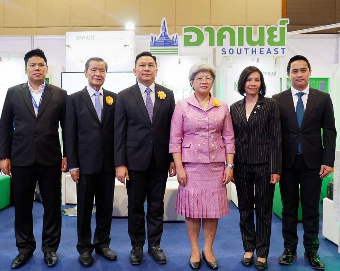 8 ตุลาคม 2562 : ภารณี เชิดวิศวพันธุ์ รองกรรมการผู้จัดการ สายงานการตลาด อาคเนย์ กลุ่มธุรกิจประกันและการเงิน (ที่ 2 จากขวา) ให้การต้อนรับ รื่นวดี สุวรรณมงคล เลขาธิการสำนักงานคณะกรรมการกำกับหลักทรัพย์และตลาดหลักทรัพย์ (ที่ 3 จากขวา) และ นิรัตน์ พงษ์สิทธิถาวร ผู้ว่าราชการจังหวัดอุดรธานี (ที่ 3 จากซ้าย) พร้อมด้วย สันติ วิริยะรังสฤษฎ์ ประธานจัดงานมหกรรมการเงิน MONEY EXPO (ที่ 2 จากซ้าย) ในโอกาสเยี่ยมชม และร่วมเปิดบูธอาคเนย์ในงาน ‘มหกรรมการเงินอุดรธานี’ ครั้งที่ 7 ณ เซ็นทรัลพลาซา จ.อุดรธานี โดยภายในบูธฯ ได้นำเสนอผลิตภัณฑ์และโปรโมชั่นต่างๆ ซึ่งมุ่งเน้นการตอบสนองทุกความต้องการให้กับกลุ่มลูกค้าทุกช่วงวัย ![]()