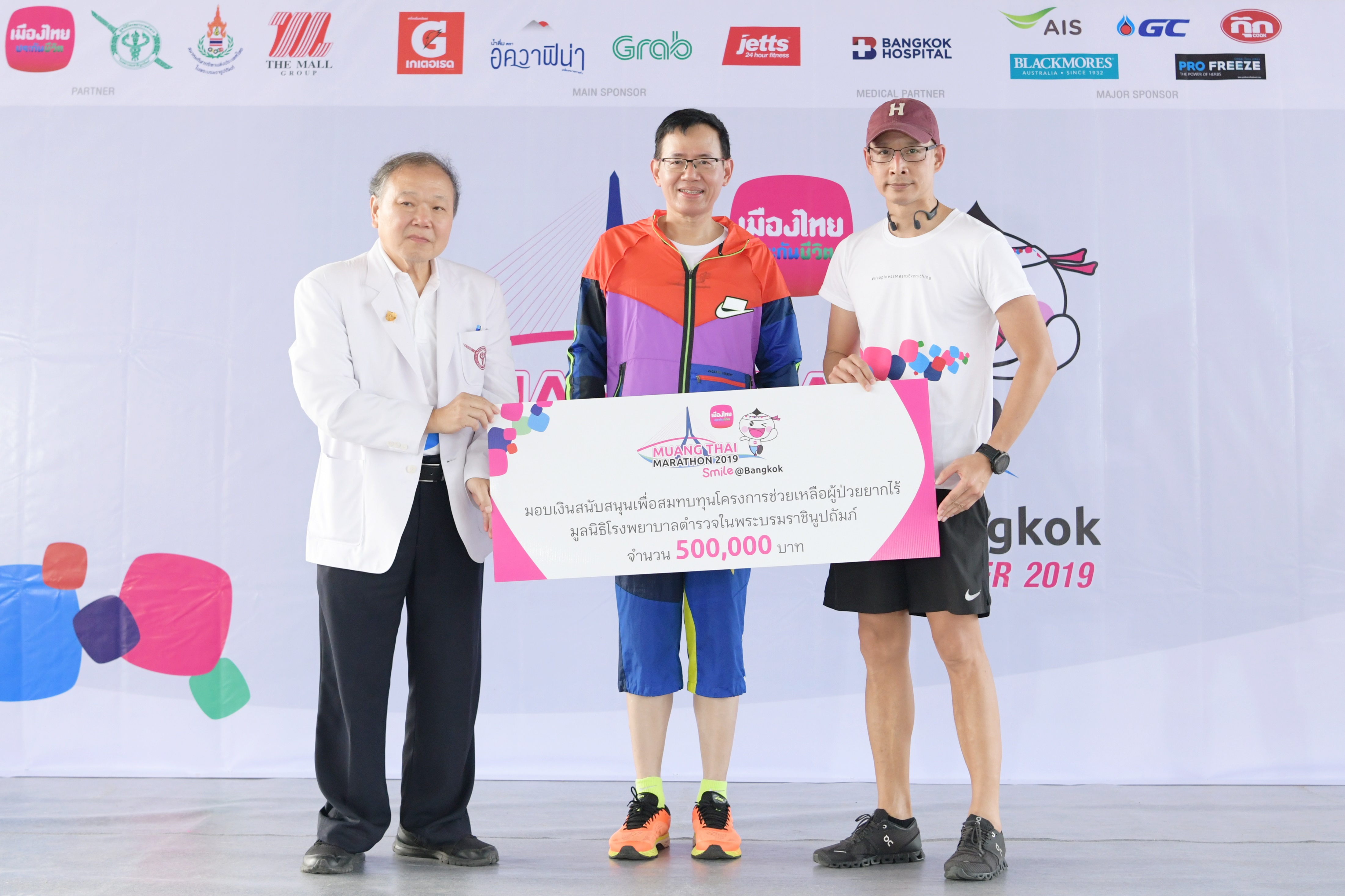 10 ตุลาคม 2562 : สาระ ล่ำซำ กรรมการผู้จัดการและประธานเจ้าหน้าที่บริหาร บริษัท เมืองไทยประกันชีวิต จำกัด (มหาชน) (ขวาสุด) มอบเงินบริจาคจำนวน 500,000 บาท จากการจัดการแข่งขันโครงการ “เมืองไทยมาราธอน 2019 Smile @Bangkok ” ให้แก่มูลนิธิโรงพยาบาลตำรวจ ในพระบรมราชินูปถัมภ์ เพื่อสมทบทุน“โครงการช่วยเหลือผู้ป่วยยากไร้” โดยมี พล.ต.ต.นพ.ทรงชัย สิมะโรจน์ เหรัญญิกมูลนิธิโรงพยาบาลตำรวจ ในพระบรมราชินูปถัมภ์ (ซ้ายสุด) เป็นผู้รับมอบ พร้อมได้รับเกียรติจาก ดร.สุทธิพล ทวีชัยการ เลขาธิการคณะกรรมการกำกับและส่งเสริมการประกอบธุรกิจประกันภัย (กลาง) ร่วมเป็นสักขีพยาน โดยจัดขึ้นภายในงาน “เมืองไทยมาราธอน 2019 Smile @Bangkok” ณ สะพานพระราม 8 กรุงเทพมหานคร เมื่อเร็วๆ นี ![]()
