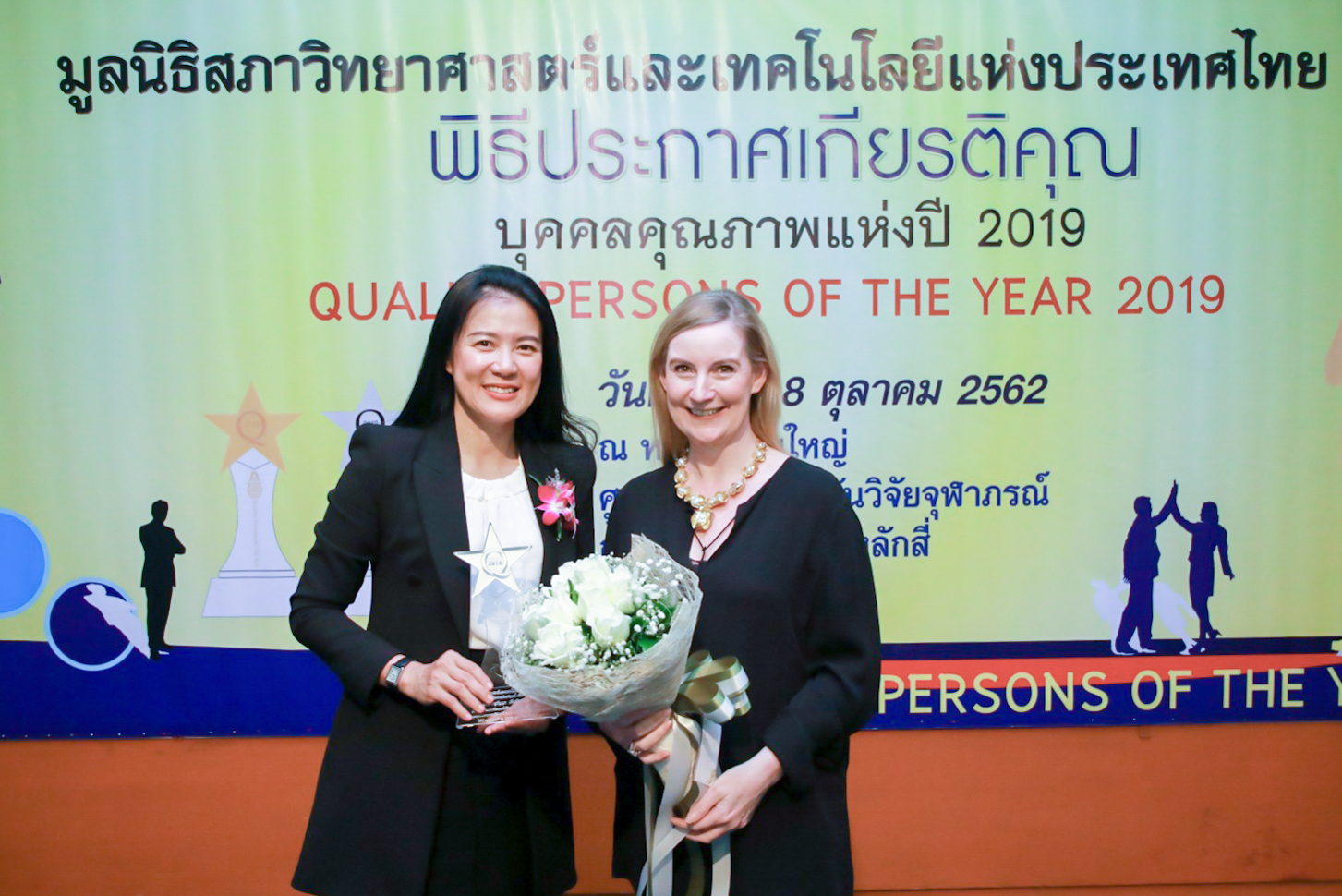 สาขาภาคธุรกิจประกันชีวิต จากมูลนิธิสภาวิทยาศาสตร์และเทคโนโลยีแห่งประเทศไทย (มสวท.) โดยได้รับเกียรติจาก คุณแซลลี่ โอฮาร่า(ขวา) ประธานเจ้าหน้าที่บริหาร ร่วมแสดงความยินดี