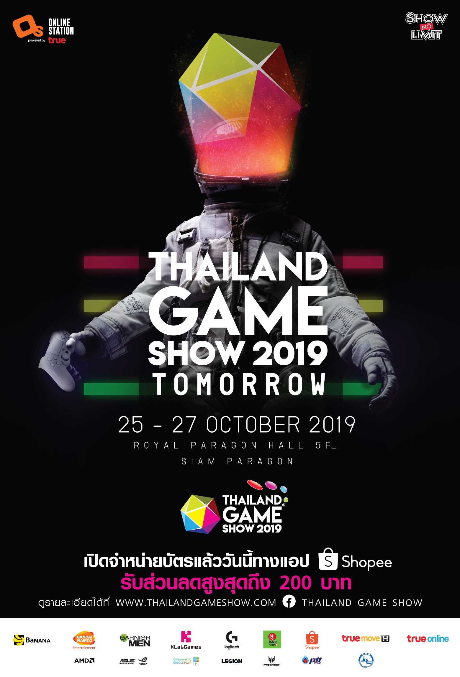 23 ตุลาคม 2562 : สองพันธมิตรยักษ์ใหญ่ “ออนไลน์ สเตชั่น” ภายใต้ บริษัท ทรู วิชั่นส์ กรุ๊ป จำกัด และ บริษัท โชว์ไร้ขีด จำกัด ขอเชิญร่วมสุดยอดมหกรรมงานเกมสุดยิ่งใหญ่แห่งเอเชียตะวันออกเฉียงใต้ “THAILAND GAME SHOW 2019” ภายใต้คอนเซ็ปต์ “TOMORROW” เพราะโลกของเกม ไม่เคยหยุดที่คำว่า “วันนี้” ตลอด 3 วันเต็ม ระหว่างวันที่ 25-27 ตุลาคม 2562 เวลา 10.00 – 20.00 น. ณ รอยัล พารากอน ฮอลล์ ชั้น 5 ศูนย์การค้าสยามพารากอน พบกับความมันส์จุใจกับ 55 บูธ ทั้งผู้ให้บริการเกม อุปกรณ์เกม และสินค้าไอที รวมสุดยอดเกมใหม่ขนทัพเปิดตัวในงานเดียวถึง 20 เกม