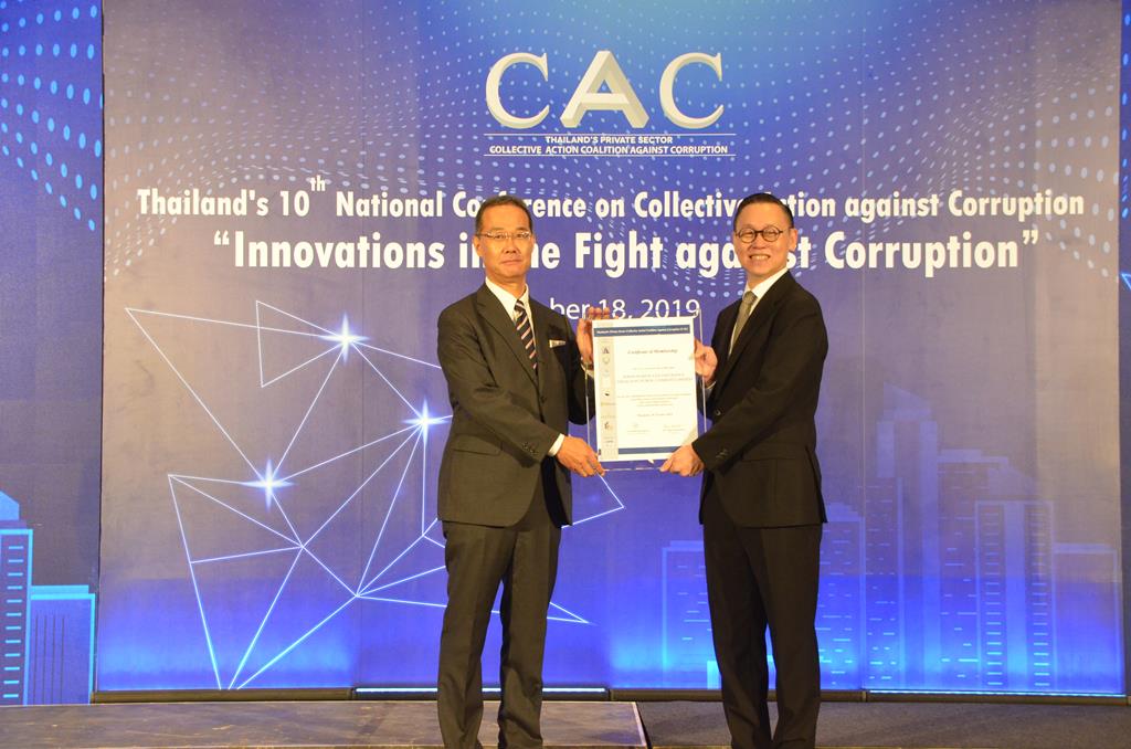 24 ตุลาคม 2562 : ชิน ทานิโมโต กรรมการผู้จัดการ บมจ.โตเกียวมารีนประกันชีวิต (ประเทศไทย) เข้ารับประกาศนียบัตร Certificate of Membership Thailand’s Private Sector Collective Action Coalition against Corruption (CAC) สะท้อนซึ่งเจตนารมณ์ของบริษัท ที่มีความมุ่งมั่นในการต่อต้านคอร์รัปชั่นทุกรูปแบบ ยึดมั่นในคุณธรรม จรรยาบรรณ และความรับผิดชอบต่อสังคม รวมทั้งผู้มีส่วนได้ส่วนเสียตามหลักบรรษัทภิบาลที่ดี