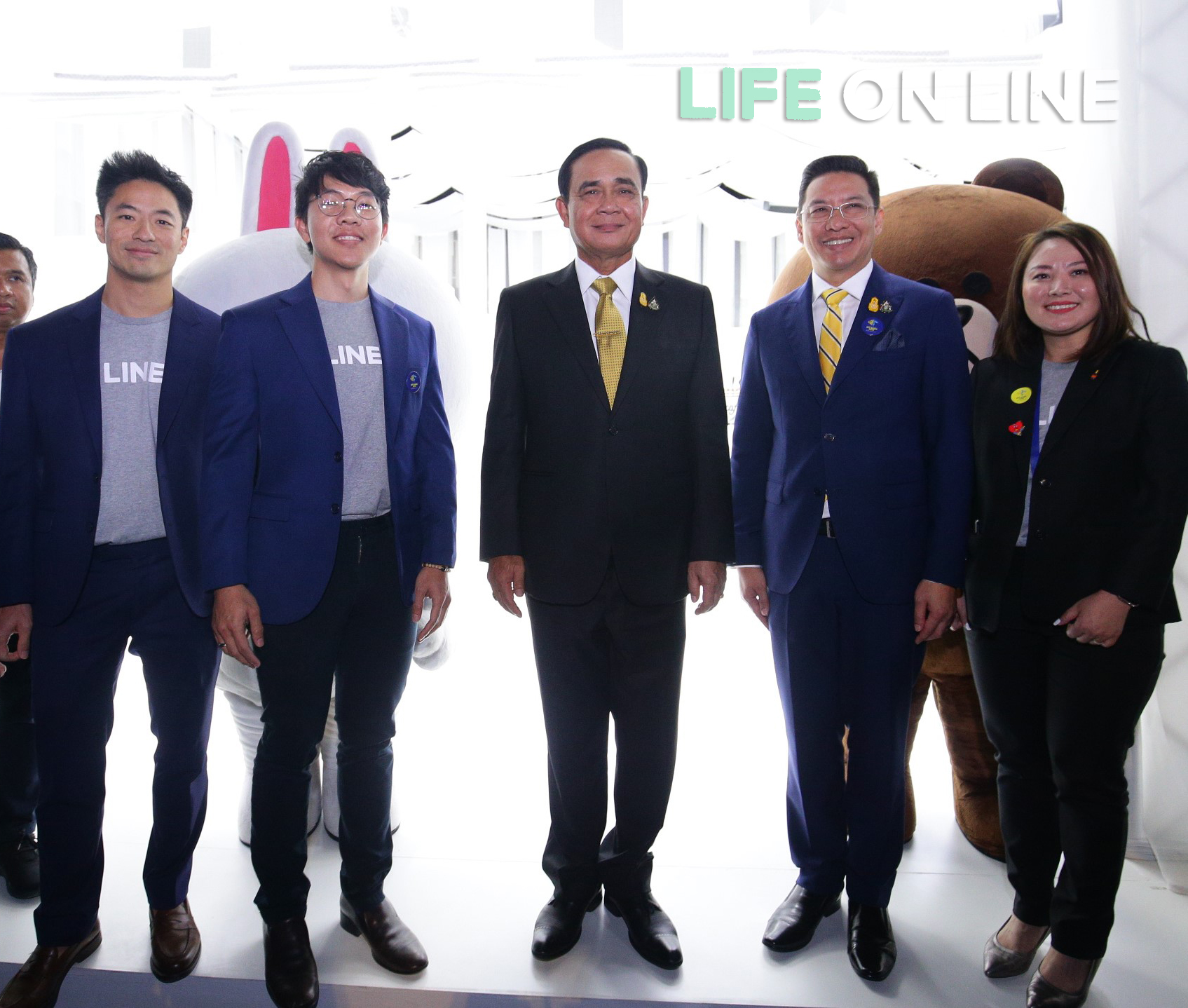 30 ตุลาคม 2562 : พลเอก ประยุทธ์ จันทร์โอชา นายกรัฐมนตรี และพุทธิพงษ์ ปุณณกันต์ รัฐมนตรีว่าการกระทรวงดิจิทัลเพื่อเศรษฐกิจและสังคม ร่วมเยี่ยมชมบูธ LINE ประเทศไทย ในงาน Digital Thailand Big Bang 2019 ภายใต้แนวคิด “Life On LINE” โชว์ศักยภาพตอบโจทย์ทุกไลฟ์สไตล์คนไทยในยุคดิจิทัล และพร้อมเป็นแพลตฟอร์มสนับสนุนภาครัฐ โดยมี นรสิทธิ์ สิทธิเวชวิจิตร (ที่สองจากซ้าย) รองประธานเจ้าหน้าที่ ฝ่ายการพาณิชย์ LINE ประเทศไทย ฤทธิชัย วานิชย์หานนท์ (ซ้าย) หัวหน้าที่ปรึกษากลุ่มหน่วยงานภาครัฐ LINE ประเทศไทย และ ศรีสุภาคย์ อารีวณิชกุล (ขวา) ผู้อำนวยการธุรกิจองค์กร LINE ประเทศไทย ให้การต้อนรับ ณ บูธ LINE ประเทศไทย งาน Digital Thailand Big Bang 2019 ศูนย์นิทรรศการและการประชุมไบเทค เมื่อเร็วๆนี้ ![]()