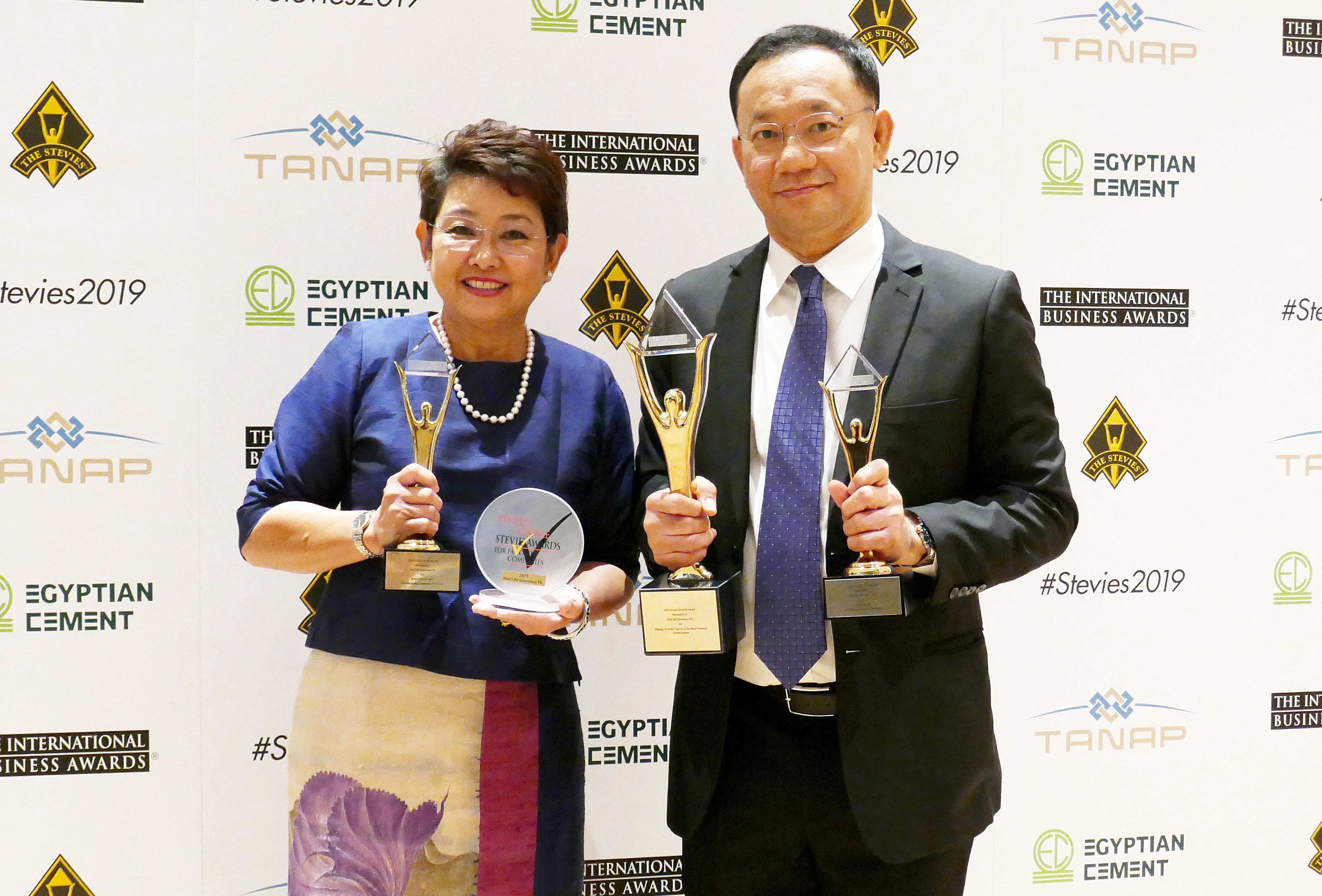 1 พฤศจิกายน 2562 : ไชย ไชยวรรณ กรรมการผู้จัดการใหญ่ พร้อมด้วย ดวงเดือน คงคาสวัสดิ์ ผู้ช่วยกรรมการผู้จัดการใหญ่ บริษัท ไทยประกันชีวิต จำกัด (มหาชน) รับรางวัล International Business Awards 2019 หรือ Stevie Awards 2019 จัดโดยสถาบัน International Business Awards ประเทศสหรัฐอเมริกา โดยไทยประกันชีวิตเป็นบริษัทประกันชีวิตแห่งเดียวที่ได้รับรางวัลสูงสุด Grand Stevie Award Winners พร้อมรางวัล People’s Choice Stevie Awards 2019 ในหมวด Insurance และรางวัลด้านอื่นๆ ในระดับ Gold / Silvers / Bronze รวมทั้งสิ้น 12 รางวัล ณ ประเทศออสเตรีย ![]()