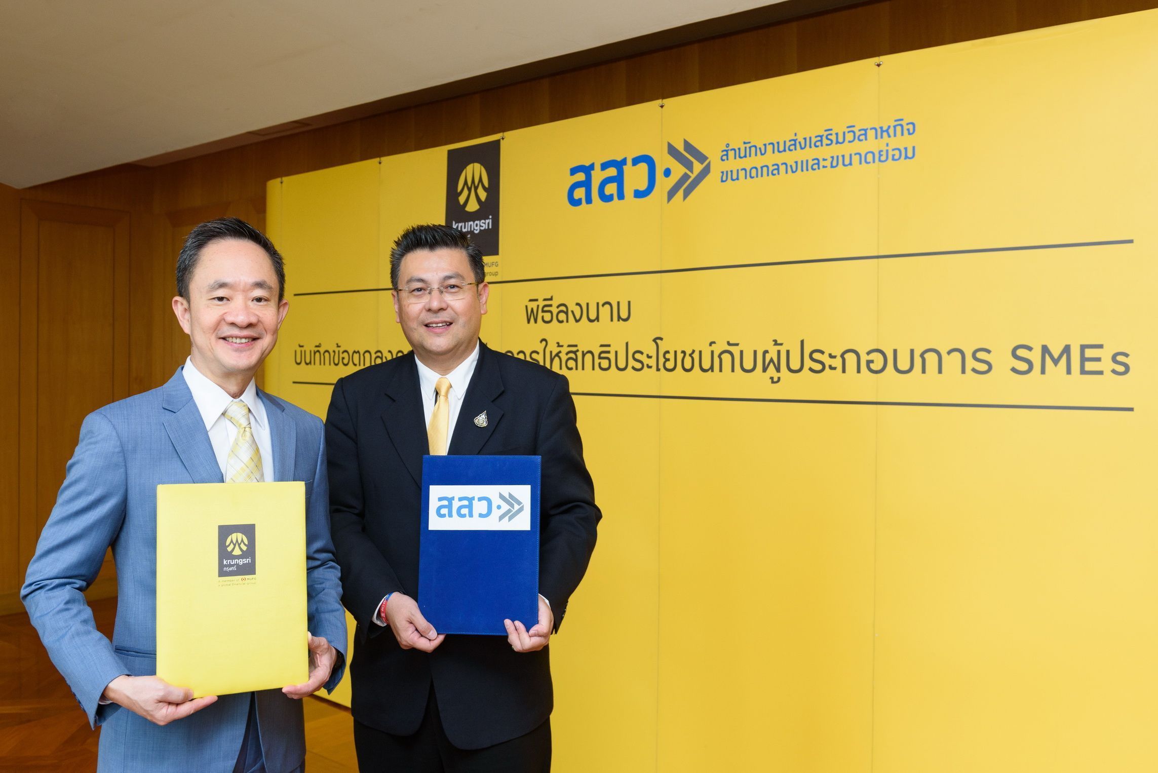 นายสุวรรณชัยเผยอีกว่า จากปัญหาดังกล่าว สสว. จึงได้ร่วมมือกับ ธนาคารกรุงศรีอยุธยา จำกัด (มหาชน) ในการทำบันทึกข้อตกลงความร่วมมือการให้สิทธิประโยชน์กับผู้ประกอบการที่ลงทะเบียน SMEs ผู้รับบริการภาครัฐ เพื่อให้ผู้ประกอบการ SME ที่เป็นสมาชิกของ สสว. และลงทะเบียนเป็นสมาชิก SME Connext ได้รับสิทธิประโยชน์ด้านการเข้าถึงแหล่งเงินทุนอย่างง่ายขึ้นและได้รับความคุ้มค่าสูงสุด รวมทั้งเป็นการเตรียมความพร้อมของผู้ประกอบการก่อนดำเนินการยื่นกู้เงินกับทางธนาคาร เพื่อให้สามารถนำแหล่งเงินทุนนี้ไปริเริ่ม ปรับเปลี่ยน หรือขยายธุรกิจ นำไปสู่การเพิ่มมูลค่าให้กับสินค้า และสร้างโอกาสทางการตลาดให้กับธุรกิจ ![]()