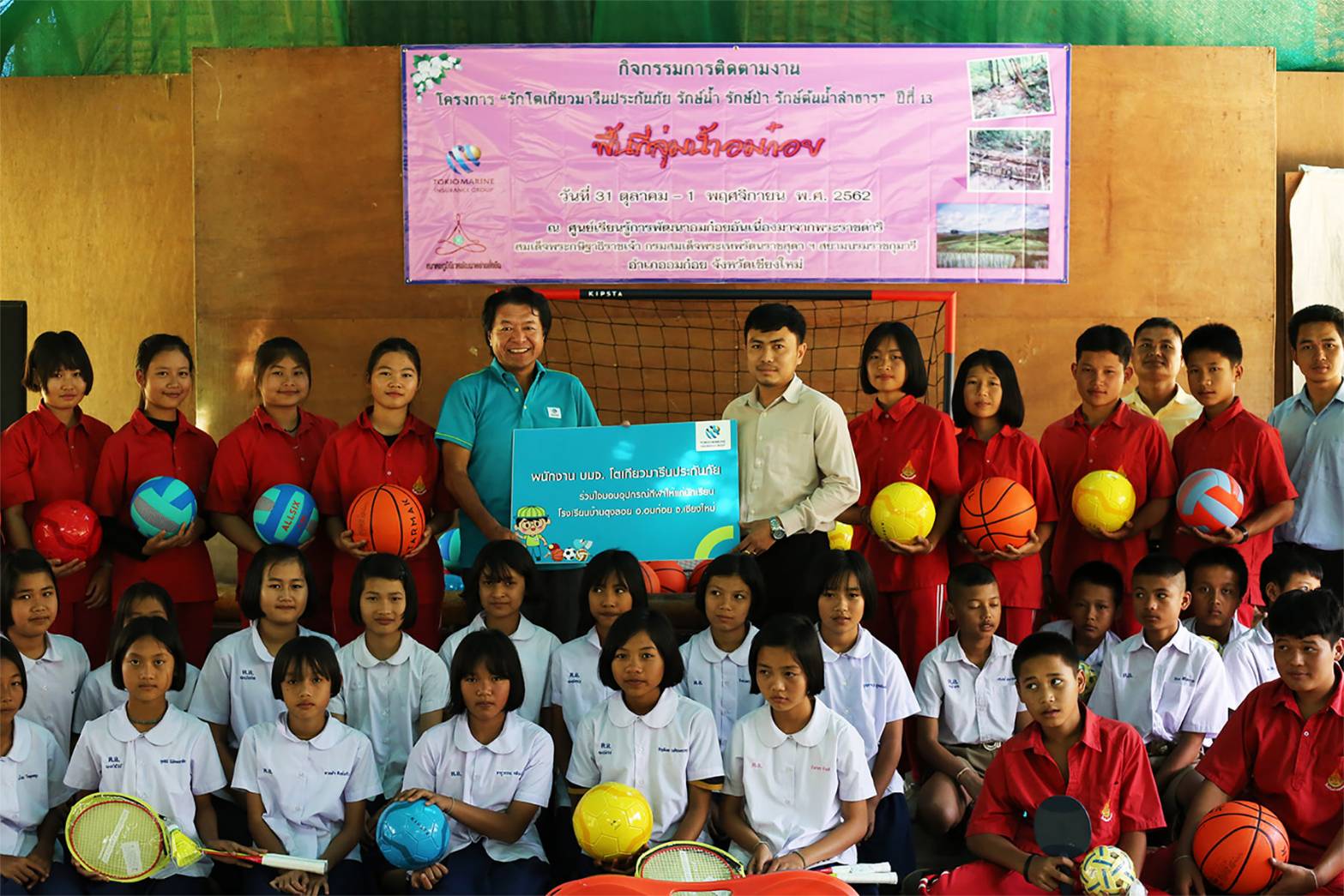4 พฤศจิกายน 2562 : ฮิโระโนะริ คิริว (กลาง แถวแรก) ประธานเจ้าหน้าที่บริหาร บมจ.โตเกียวมารีนประกันภัย (ประเทศไทย) นำพนักงานจิตอาสา คู่ค้า และ ตัวแทน ทำกิจกรรม “โตเกียวมารีนประกันภัย รักษ์น้ำ รักษ์ป่า รักต้นน้ำลำธาร” ร่วมกับ สมาคมภูมินิเวศพัฒนาอย่างยั่งยืน ต่อเนื่องเป็นปีที่ 13 ณ ศูนย์เรียนรู้การพัฒนาอมก๋อยอันเนื่องมาจากพระราชดำริ สมเด็จพระกนิษฐาธิราชเจ้า กรมสมเด็จพระเทพรัตนราชสุดาฯ สยามบรมราชกุมารี อำเภอ อมก๋อย จังหวัดเชียงใหม่