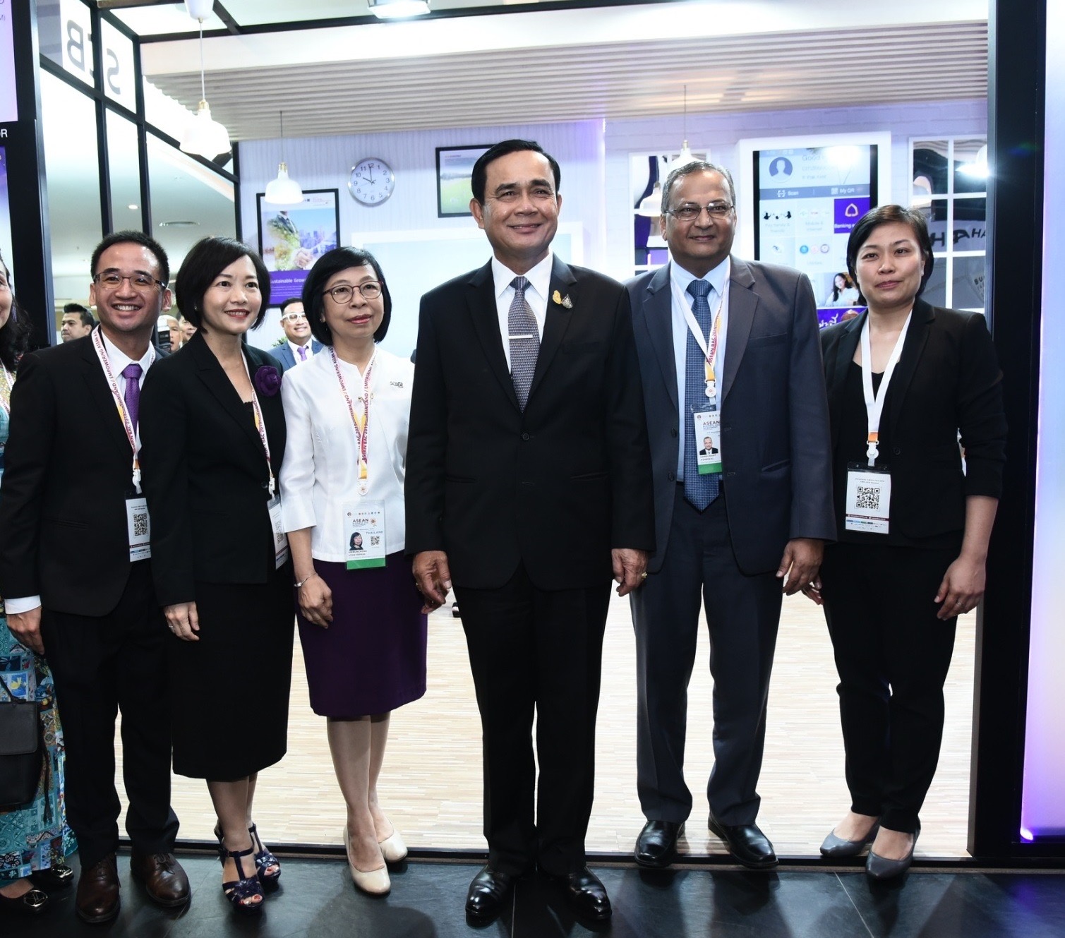 ในโอกาสนี้ พล.อ.ประยุทธ์ จันทร์โอชา นายกรัฐมนตรี ได้ให้เกียรติเยี่ยมชมบูธของธนาคารไทยพาณิชย์ โดยมีนายกมัลกานต์ อากาวัล ที่ปรึกษาประธานเจ้าหน้าที่บริหาร ด้านธุรกิจต่างประเทศ (ที่สองจากขวา) และผู้บริหารระดับสูงธนาคารไทยพาณิชย์ ให้การต้อนรับ