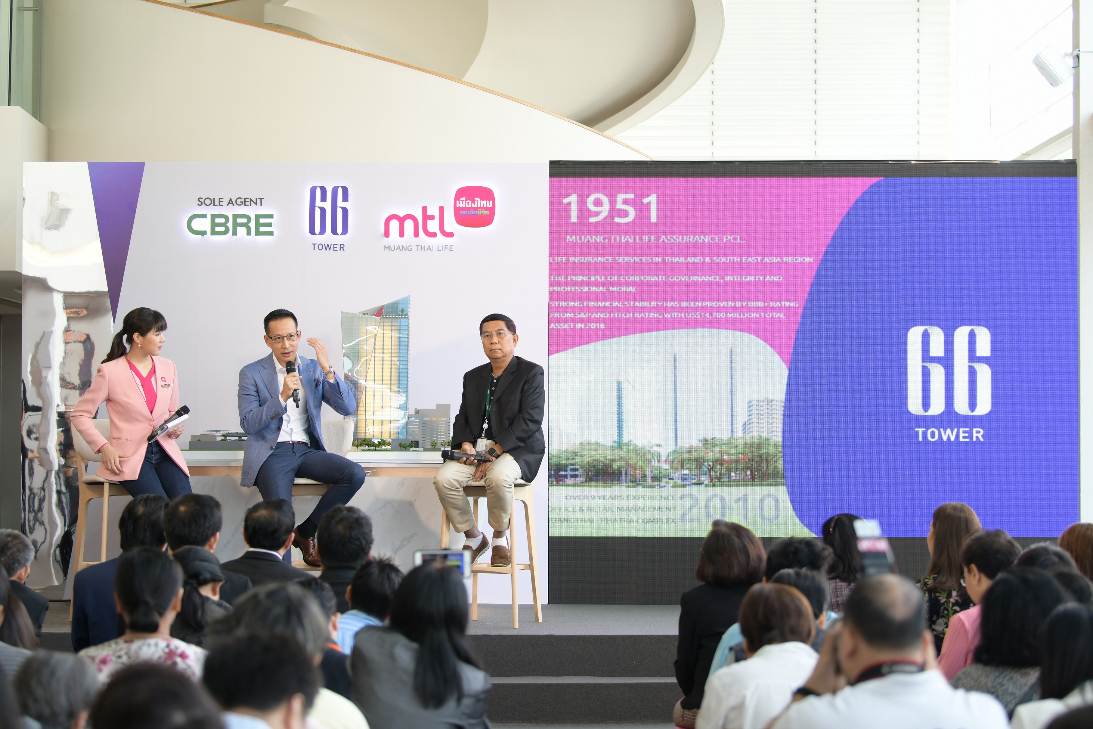 5 พฤศจิกายน 2562 : นายสาระ ล่ำซำ กรรมการผู้จัดการและประธานเจ้าหน้าที่บริหาร บริษัท เมืองไทยประกันชีวิต จำกัด (มหาชน) หรือ MTL เปิดเผยว่า เมืองไทยประกันชีวิตเดินหน้าขยายการลงทุนด้วยการบุกตลาดพัฒนาอสังหาริมทรัพย์ พร้อมเปิดตัวอาคาร “66 Tower” (ซิคตี้ซิกส์ ทาวเวอร์) The Living Workplace Solution โครงการอาคารสำนักงานให้เช่าเกรดเอ แห่งใหม่ บนถนนสุขุมวิท ใกล้ซอยสุขุมวิท 66 ซึ่งออกแบบภายใต้คอนเซปต์ Human Centric Living Workplace มุ่งออกแบบพื้นที่โดยเน้นผู้ใช้งานอาคารเป็นศูนย์กลาง