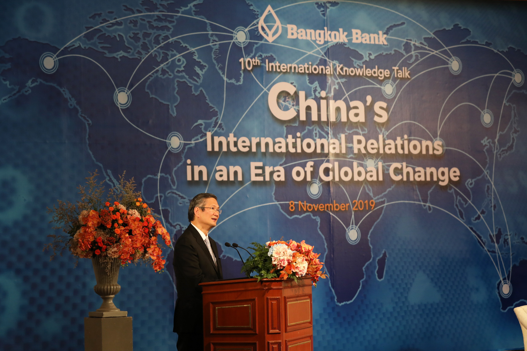 8 พฤศจิกายน 2562 : ปิติ สิทธิอำนวย (กลาง) ประธานกรรมการธนาคาร ชาติศิริ โสภณพนิช (ที่ 2 จากขวา) กรรมการผู้จัดการใหญ่ ธนาคารกรุงเทพ จำกัด (มหาชน) ร่วมให้การต้อนรับ หยาง หยาง (ที่ 3 จากซ้าย) อุปฑูตสาธารณรัฐประชาชนจีนประจำประเทศไทย ฯพณฯ พิริยะ เข็มพล (ที่ 3 จากขวา) อดีตเอกอัครราชฑูต ณ กรุงปักกิ่ง ดร. ไจ๋ คุน (ขวา) รองผู้อำนวยการ สถาบันอาณาบริเวณศึกษา มหาวิทยาลัยปักกิ่ง ศาสตราจารย์อวี๋ เซี่ยงตง (ที่ 2 จากซ้าย) ผู้อำนวยการ สถาบันเวียดนามศึกษา มหาวิทยาลัยเจิ้งโจว และดร. อาร์ม ตั้งนิรันดร (ซ้าย) ผู้ช่วยคณบดีคณะนิติศาสตร์ จุฬาลงกรณ์มหาวิทยาลัย โอกาสให้เกียรติเป็นวิทยากรแลกเปลี่ยนข้อมูลความรู้ ในงานเสวนานุกรมความรู้ ครั้งที่ 10 ในหัวข้อ “จีนกับนโยบายด้านความสัมพันธ์ระหว่างประเทศเมื่อกระแสโลกเปลี่ยน” (China’s International Relations in an Era of Global Change) ที่ธนาคารกรุงเทพ สำนักงานใหญ่ ถนนสีลม ![]()