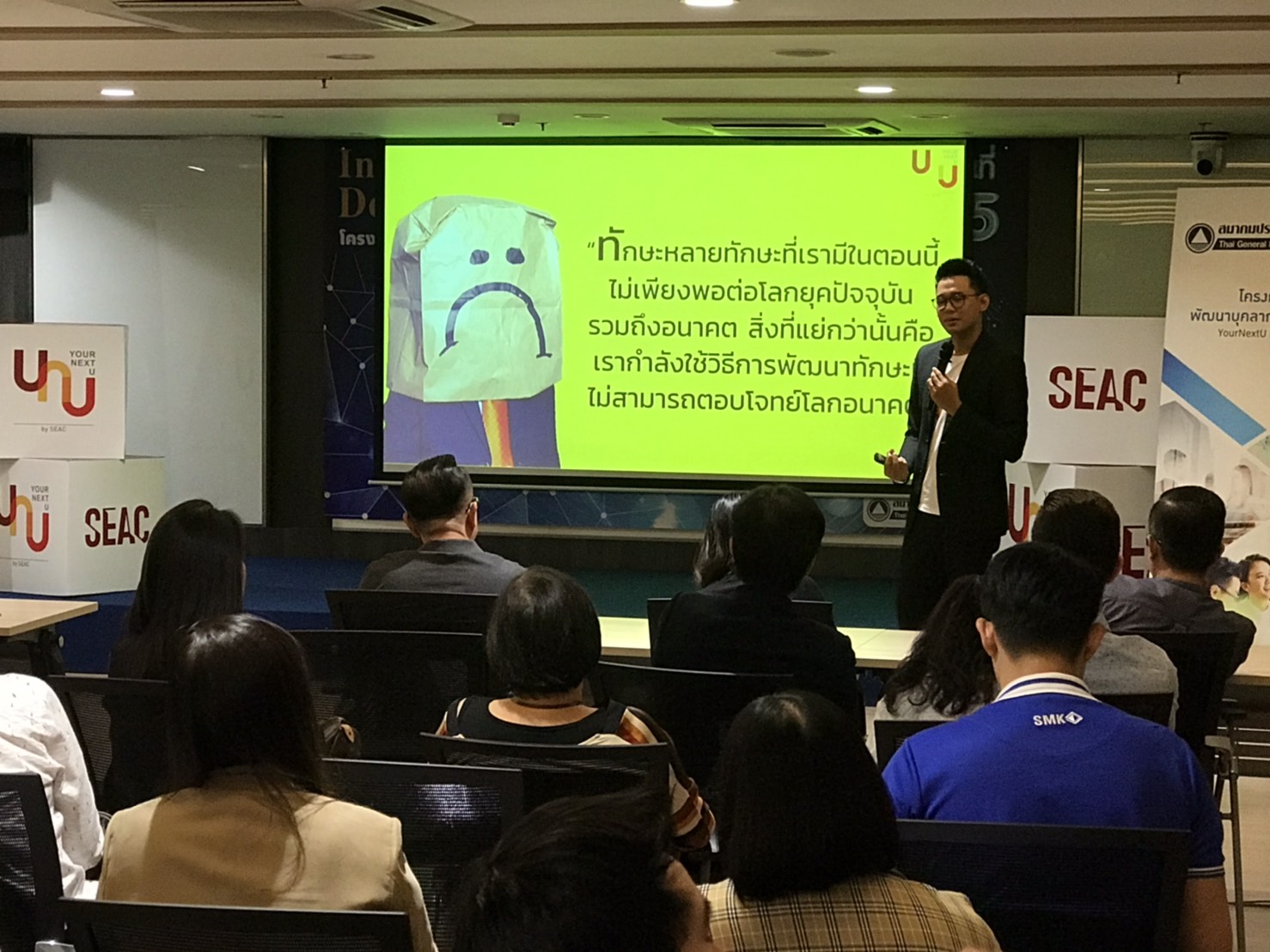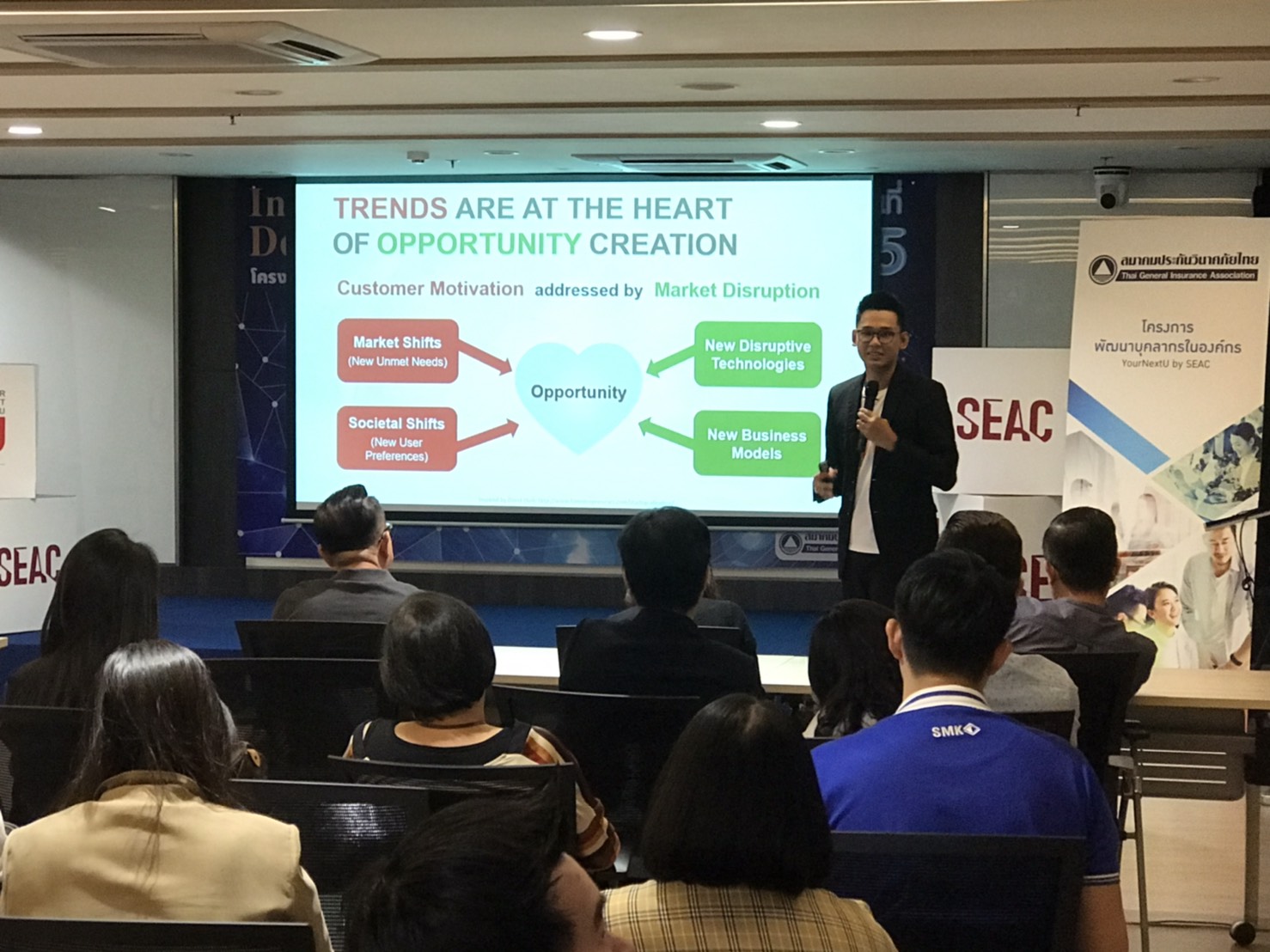 8 พฤศจิกายน 2562 : ด้วยความตระหนักถึงหลักการเรียนรู้ตลอดชีวิต (Lifelong Learning Concept) สมาคมประกันวินาศภัยไทย จึงได้ร่วมกับ YourNextU by SEAC (South East ASIA Center) สถาบันแห่งการพัฒนาการเรียนรู้ชั้นนำของประเทศไทยจัด Knowledge Sharing Session ให้กับสมาชิกสมาคมฯ และหน่วยงานที่เกี่ยวข้องกับธุรกิจประกันภัย เพื่อพร้อมรับกับการเปลี่ยนแปลงกับสภาวะแวดล้อมทางธุรกิจ (Business Environment Ecosytem)