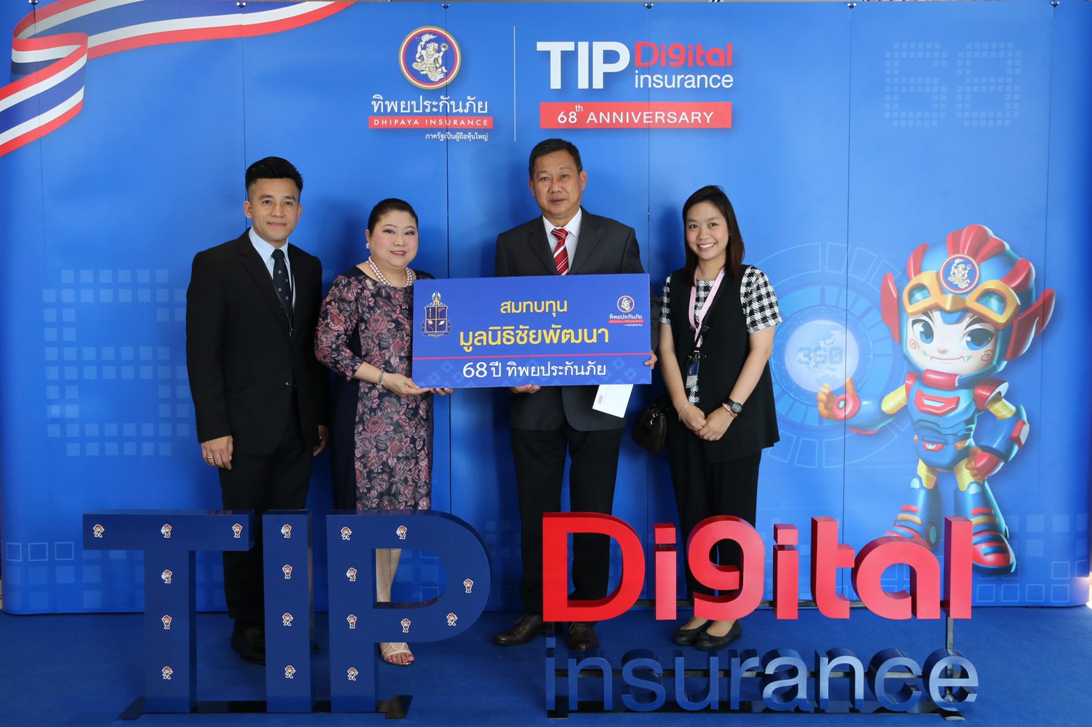 8 พฤศจิกายน 2562 : นายสมใจนึก เองตระกูล ประธานกรรมการ ดร.สมพร สืบถวิลกุล กรรมการผู้จัดการใหญ่ พร้อมด้วยคณะกรรมการบริษัท ที่ปรึกษา ผู้บริหาร และพนักงาน บมจ.ทิพยประกันภัย จัดงานครบรอบ 68 ปี ทิพยประกันภัย “Tip Digital Insurance” พร้อมรับบริจาคเงิน สมทบทุนมูลนิธิชัยพัฒนา เพื่อน้อมอุทิศถวายเป็นพระราชกุศลแด่ พระบาทสมเด็จพระบรมชนกาธิเบศร มหาภูมิพลอดุลยเดชมหาราช บรมนาถบพิตร