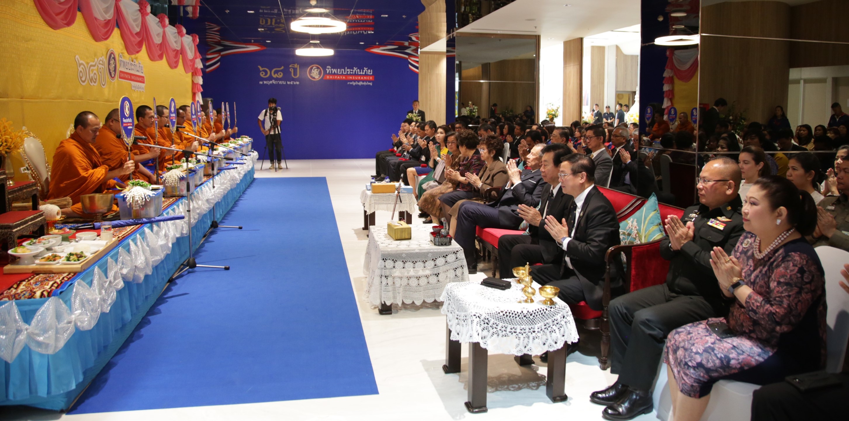 การจัดพิธีครบรอบ 68 ปี ทิพยประกันภัย ในช่วงเช้า ผู้บริหารและพนักงานได้ร่วมกันทำบุญตักบาตร โดยนิมนต์พระภิกษุสงฆ์เจริญพระพุทธมนต์ ถวายภัตตาหาร และจตุปัจจัยไทยธรรม เพื่อความเป็นสิริมงคล