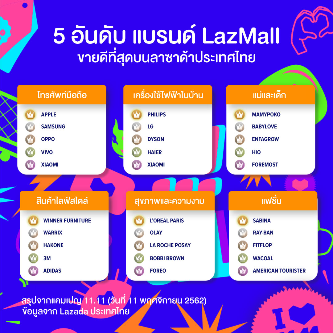 แชมป์แบรนด์ LazMall ขายดีที่สุดบนลาซาด้าประเทศไทย ในแคมเปญ 11.11