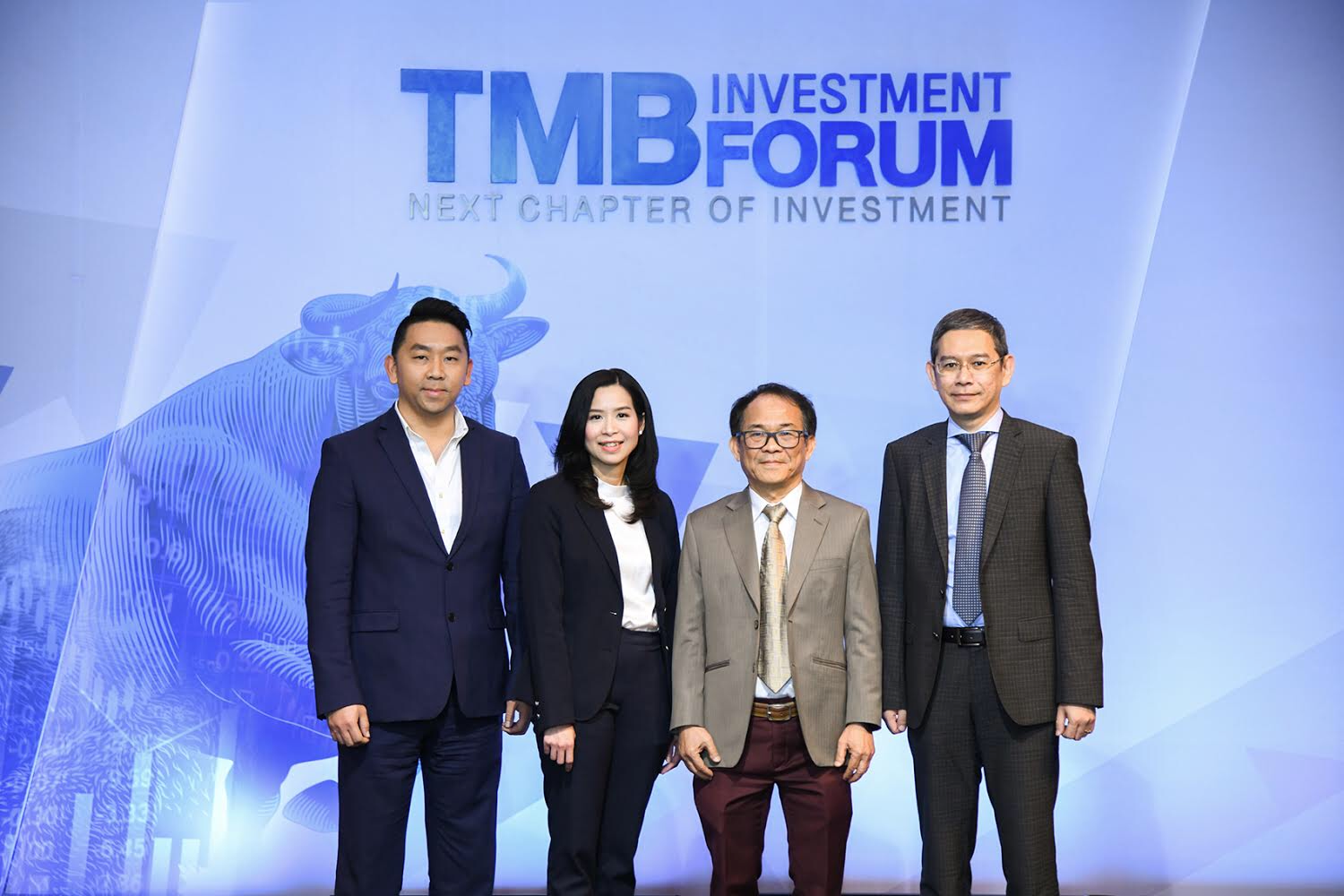 18 พฤศจิกายน 2562 : ทีเอ็มบี หรือ ธนาคารทหารไทย จำกัด (มหาชน) นำโดย นางกิดาการ ชัฎสุวรรณ (ที่ 2 จากซ้าย) หัวหน้าเจ้าหน้าที่บริหารผลิตภัณฑ์กองทุนรวม ทีเอ็มบี และ นายยืนยง ทรงศิริเดช (ซ้าย) หัวหน้าเจ้าหน้าที่บริหารลูกค้าธนบดีธนกิจ จัดงาน TMB Investment Forum ในหัวข้อ Next Chapter of Investment ให้แก่กลุ่มลูกค้าของทีเอ็มบี ได้มองเห็นภาพรวมและแนวโน้มเศรษฐกิจโลกในปี 2020 พร้อมทิศทางการลงทุนทั้งในประเทศและต่างประเทศ ที่จะช่วยให้มีมุมมองในการสร้างผลตอบแทนได้อย่างมีประสิทธิภาพมากยิ่งขึ้น ภายในงานได้รับเกียรติจากวิทยากร ดร.นิเวศน์ เหมวชิรวรากร (ที่ 3 จากซ้าย) และนายทวีสุข ธรรมศักดิ์ (ที่ 4 จากซ้าย) ที่ปรึกษาด้านเศรษฐกิจการเงินและการลงทุน ที่มาแนะแนวทางในการลงทุน เมื่อเร็วๆ นี้ ณ โรงแรม อินเตอร์คอนทิเนนทัล กรุงเทพฯ ![]()