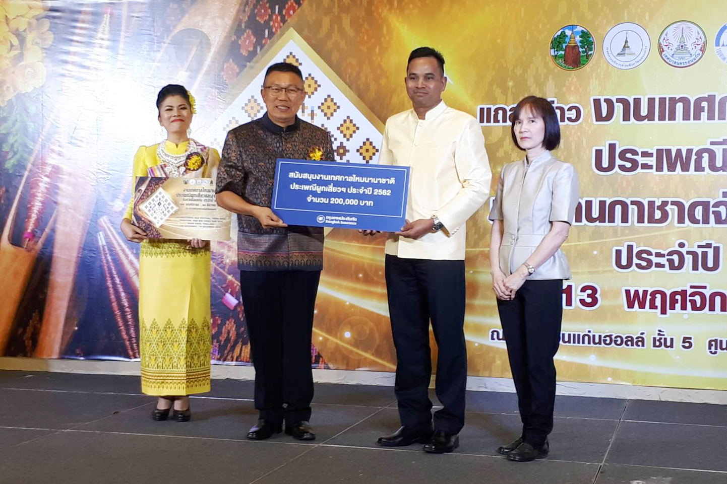 18 พฤศจิกายน 2562 : บริษัท กรุงเทพประกันภัย จำกัด (มหาชน) หรือ BKI โดย ทวี ขวัญทอง (ที่ 2 จากขวา) ผู้จัดการภาคตะวันออกเฉียงเหนือ ธุรกิจสาขาและการร่วมทุน เป็นผู้แทนบริษัทฯ มอบเงินสนับสนุนการจัดงานเทศกาลไหมนานาชาติ ประเพณีผูกเสี่ยวฯ ประจำปี 2562 จำนวน 200,000 บาท เพื่อสืบสานอนุรักษ์ศิลปวัฒนธรรมอันดีงามของจังหวัดขอนแก่นและภาคอีสาน ได้แก่ ประเพณีผูกเสี่ยว การแสดงศิลปวัฒนธรรมพื้นบ้าน เพื่อส่งเสริมสนับสนุนการท่องเที่ยวของจังหวัดขอนแก่น โดยมีนายสมศักดิ์ จังตระกุล ผู้ว่าราชการจังหวัดขอนแก่นเป็นผู้รับมอบ ณ ศูนย์การค้าเซ็นทรัลพลาซ่าขอนแก่น อ.เมือง จ.ขอนแก่น เมื่อเร็วๆ นี้ ![]()