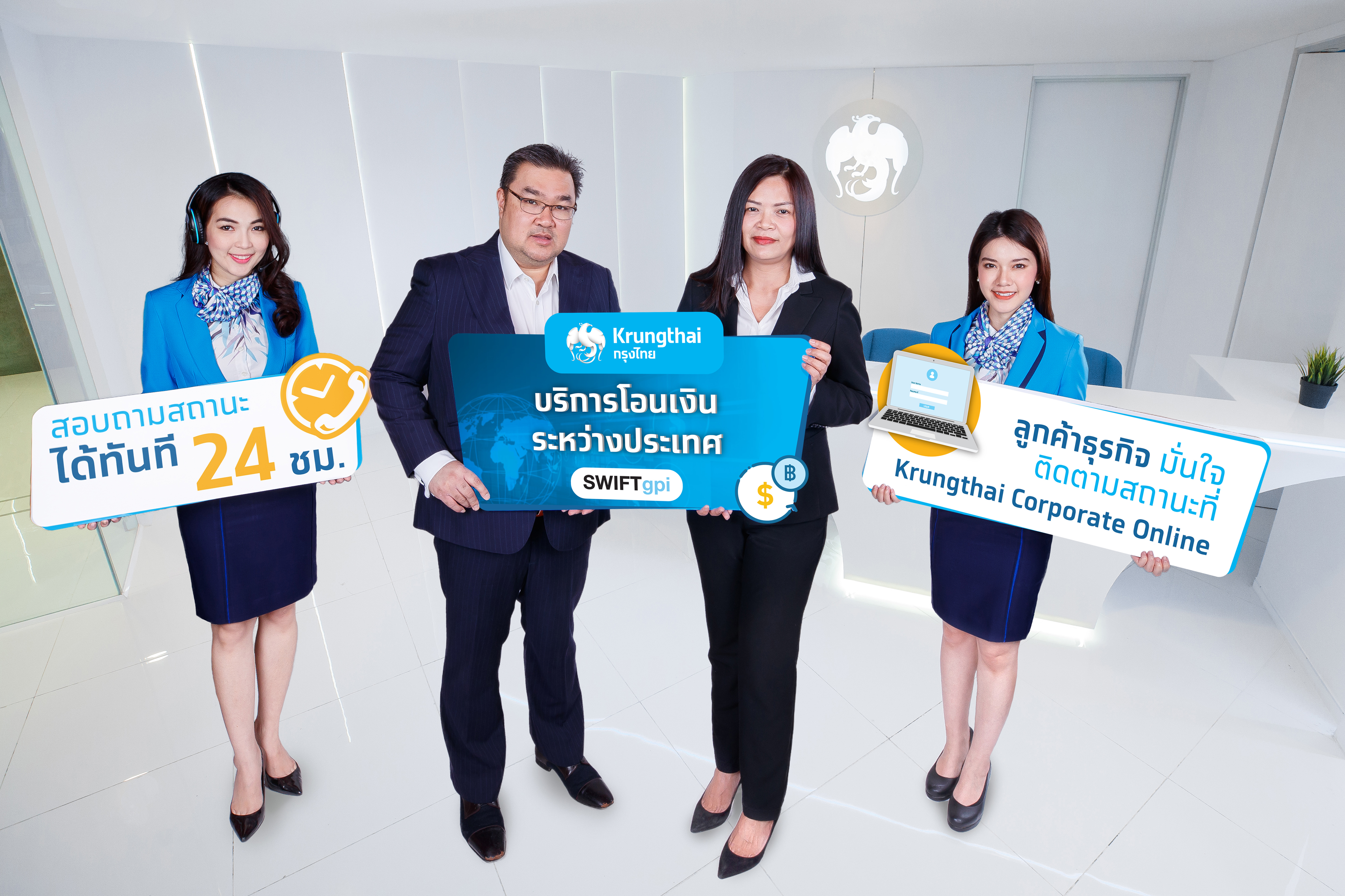22 พฤศจิกายน 2562 : รวินทร์ บุญญานุสาสน์ รองกรรมการผู้จัดการใหญ่ ธนาคารกรุงไทย ร่วมมือกับ SWIFT พัฒนาบริการโอนเงินระหว่างประเทศ SWIFT Global Payment Innovation (SWIFT GPI) เพื่อเพิ่มขีดความสามารถในการแข่งขันให้กับลูกค้าด้วยผลิตภัณฑ์ที่ได้มาตรฐานสากล สะดวก รวดเร็ว และปลอดภัยสูงสุด โดยลูกค้าใช้บริการได้ที่สาขาของธนาคารกว่า 1,100 แห่งทั่วประเทศ แอปพลิเคชั่น กรุงไทย NEXT และ Krungthai Corporate Online โดยไม่มีค่าใช้จ่ายเพิ่มเติมจากบริการโอนเงินระหว่างประเทศแบบปกติ