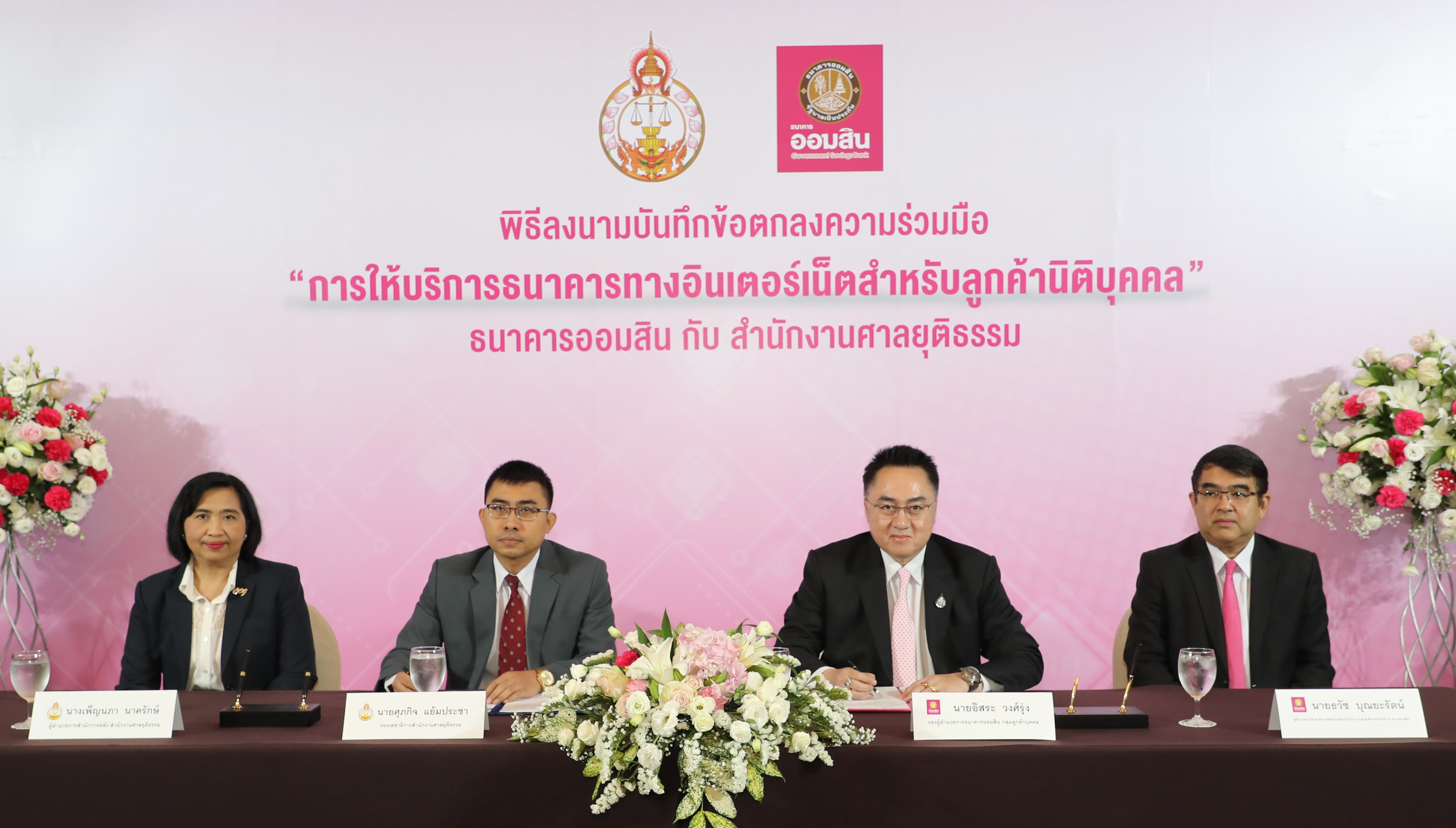 26 พฤศจิกายน 2562 : ธนาคารออมสิน ได้มีพิธีลงนามบันทึกข้อตกลงการใช้บริการธนาคารทางอินเตอร์เน็ตสำหรับลูกค้านิติบุคคล (บริการ GSB Corporate Internet Banking) ระหว่างนายอิสระ วงศ์รุ่ง รองผู้อำนวยการธนาคารออมสิน กลุ่มลูกค้าบุคคล และนายศุภกิจ แย้มประชา รองเลขาธิการสำนักงานศาลยุติธรรม เพื่อเพิ่มประสิทธิภาพการให้บริการ และอำนวยความสะดวกในการบริหารจัดการทางการเงินของหน่วยงานภายใต้การกำกับดูแลของสำนักงานศาลยุติธรรม ตลอดจนยังช่วยลดระยะเวลาและค่าใช้จ่ายของประชาชนในการติดต่อราชการ