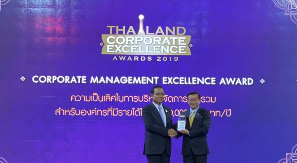 สาขาความเป็นเลิศในการบริหารจัดการโดยรวม (Corporate Management Excellence Award) จากพลเอก ประยุทธ์ จันทร์โอชา นายกรัฐมนตรี ฐานะประธานในพิธี ในงานพิธีประกาศผลรางวัลพระราชทาน Thailand Corporate Excellence Awards 2019 และรางวัลพระราชทาน SMES Excellence Awards 2019
