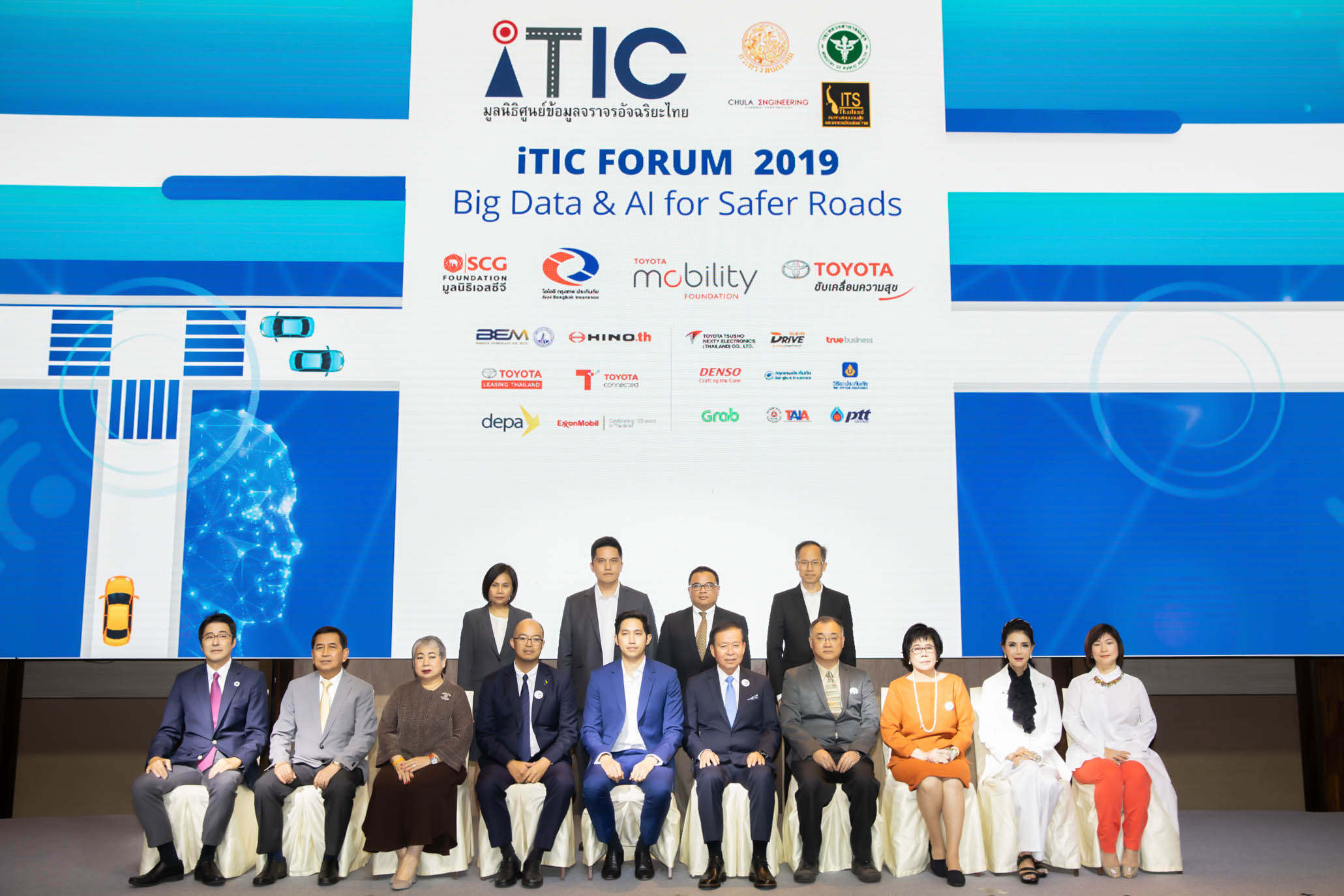 สำหรับ โครงการวิจัยและพัฒนาข้อมูลอุบัติเหตุเพื่อความปลอดภัยบนท้องถนน (Big Data and AI for Safer Roads) ใช้ฐานข้อมูลจากการแบ่งปันข้อมูลขนาดใหญ่ (Big Data) ระหว่างหน่วยงานต่างๆ และใช้เทคโนโลยี AI หรือปัญญาประดิษฐ์ (Artificial Intelligence) ในการวิเคราะห์ข้อมูลอุบัติเหตุบนท้องถนน เช่น สาเหตุหรือปัจจัยเสี่ยงในการเกิดอุบัติเหตุ เพื่อนำผลที่ได้มาใช้เป็นแนวทางในการแก้ไขและป้องกันปัญหาต่อไปในอนาคต ![]()