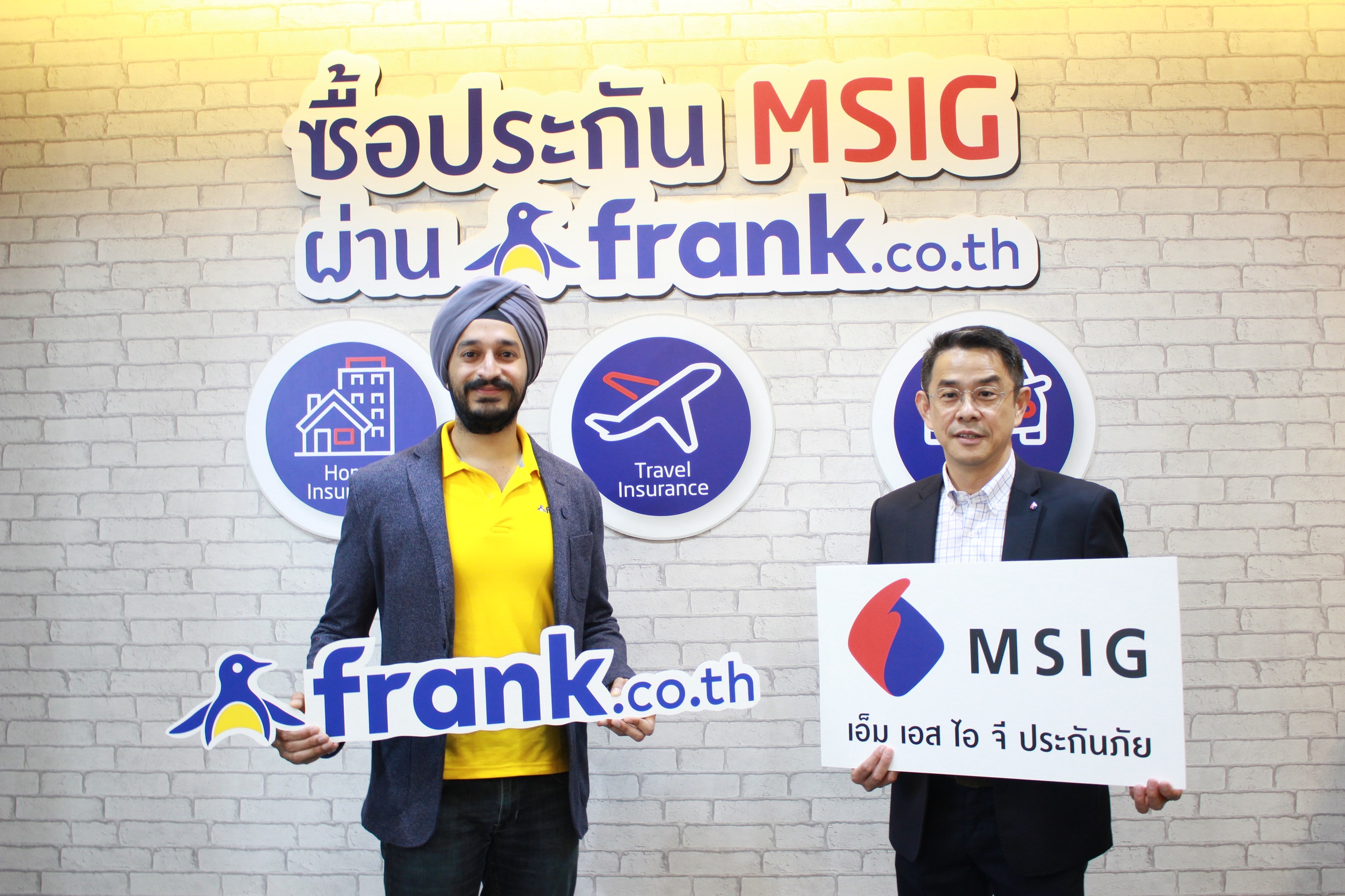 กรุงเทพฯ 3 ธันวาคม 2562 : ฮัรเปรม ดูวา (ซ้าย) กรรมการผู้จัดการ บริษัท แฟรงค์ อินชัวรันซ์ โบรกเกอร์ จำกัด หรือเว็บไซต์ Frank.co.th พร้อมด้วย รัฐพล กิติศักดิ์ไชยกุล (ขวา) กรรมการผู้อำนวยการ บริษัท เอ็ม เอส ไอ จี ประกันภัย (ประเทศไทย) จำกัด (มหาชน) จับมือเป็นพันธมิตรร่วมกันขยายตลาดผ่านช่องทางออนไลน์ เน้นจัดเต็มทุกผลิตภัณฑ์ประกันภัยออนไลน์ทั้งประกันเดินทางต่างประเทศ ประกันรถยนต์ รวมทั้งประกันภัยบ้านและทรัพย์สิน เพื่อต่อยอดให้โปรดักส์ประกันภัยออนไลน์เข้าถึงผู้บริโภคยุคออนไลน์ได้อย่างรวดเร็ว