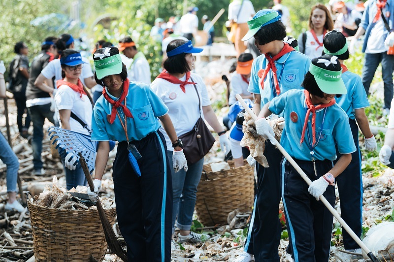 นอกจากนี้ อาสาสมัครของชับบ์ จำนวนกว่า 150 คน ร่วมกับนักเรียนจำนวน 100 คน จากโรงเรียนเอี่ยมสุรีย์ (อนุบาลสมุทรปราการ) ซึ่งเป็นโรงเรียนในชุมชนที่ได้รับผลกระทบด้านสิ่งแวดล้อมจากขยะพลาสติก รวมตัวกันทำกิจกรรมการเรียนรู้เกี่ยวกับระบบนิเวศวิทยาของป่าชายเลน ตลอดจนอันตรายจากขยะพลาสติกที่ส่งผลต่อระบบนิเวศวิทยา และมนุษย์ หลังจากนั้นทั้งอาสาสมัครจากชับบ์และนักเรียน ยังได้ศึกษาความเป็นไปของสิ่งมีชีวิตต่างๆ ผ่านการเดินป่าชายเลน จากนั้น ทุกคนต่างร่วมใจกันเก็บขยะริมชายหาดป่าชายเลน พร้อมกันนี้ บริษัทฯ ยังได้มอบถังขยะโครงลวดเหล็กดัดรูปปลาวาฬให้แก่โรงเรียน เพื่อเป็นการกระตุ้นให้นักเรียนนำขยะพลาสติกไปรีไซเคิล