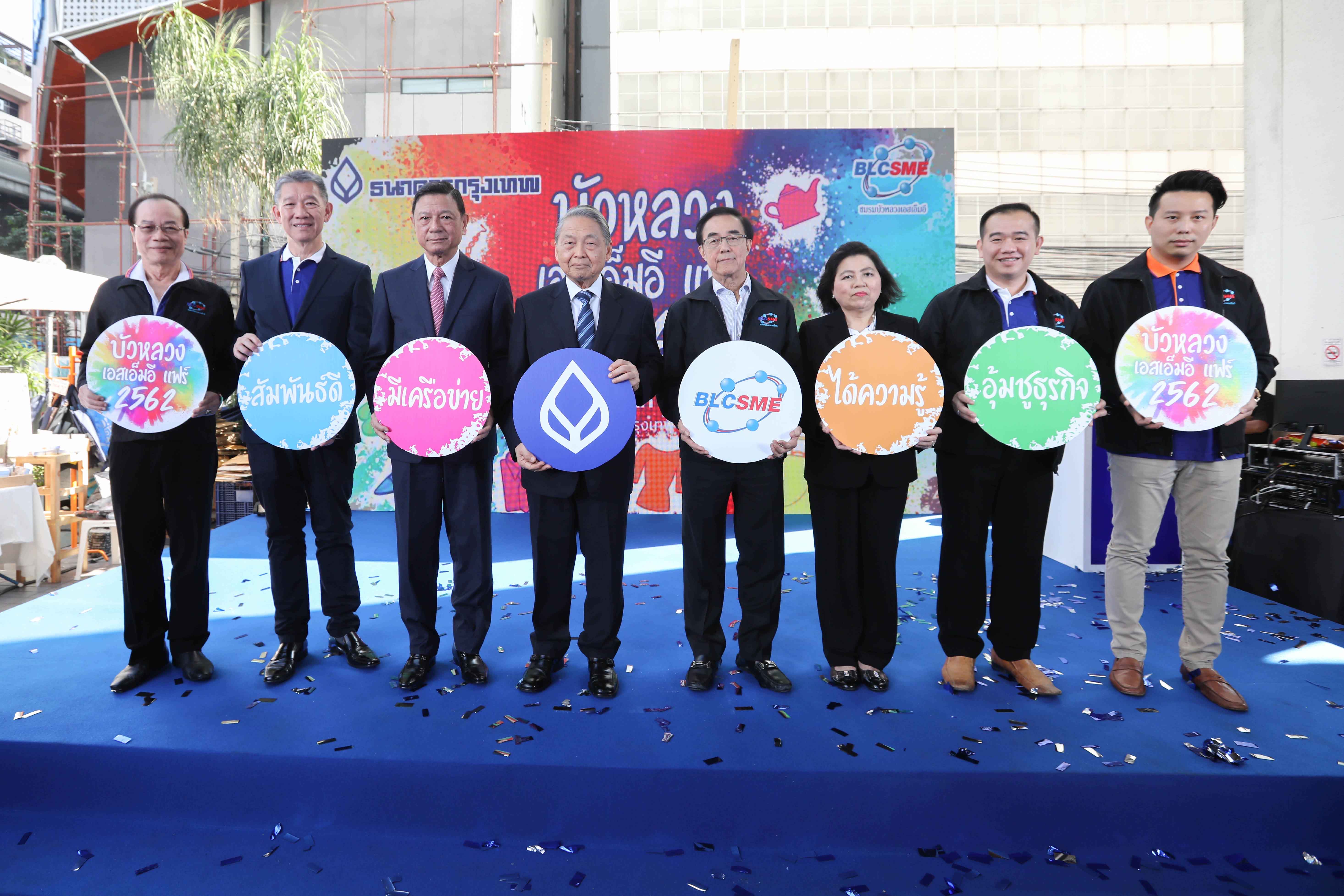 13 ธันวาคม 2562 : นายเดชา ตุลานันท์ ประธานกรรมการบริหาร (ที่ 4 จากซ้าย) นายสุวรรณ แทนสถิตย์ กรรมการรองผู้จัดการใหญ่ (ที่ 3 จากซ้าย) และนายวีระศักดิ์ สุตัณฑวิบูลย์ (ที่ 2 จากซ้าย) ธนาคารกรุงเทพ จำกัด (มหาชน) ร่วมกับชมรมบัวหลวงเอสเอ็มอี นำโดย นายสุรชัย โสตถีวรกุล ประธานชมรมบัวหลวงเอสเอ็มอี (ที่ 4 จากขวา) นางสุดารัตน์ สัจยากร ประธานกรรมการฝ่ายสมาชิก (ที่ 3 จากขวา) นายจิรัฏฐ์ อริยรัตนหิรัญ ประธานกรรมการฝ่ายกิจกรรม (ที่ 2 จากขวา) นายอติชาต จิรยกุล ประธานกรรมการฝ่ายไอที (ขวา) และนายพันธ์ศักดิ์ ลีลาวรรณกุลศิริ ที่ปรึกษาชมรมบัวหลวงเอสเอ็มอี (ซ้าย) ร่วมเปิดงาน ‘บัวหลวงเอสเอ็มอีแฟร์ 2562’ งานแฟร์ประจำปีที่จัดขึ้นอย่างต่อเนื่องเป็นครั้งที่ 11