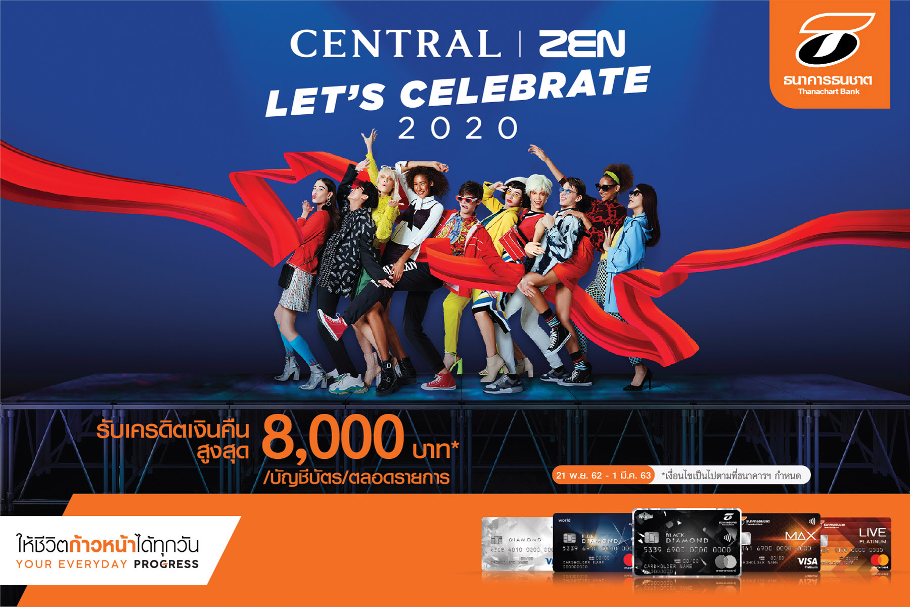13 ธันวาคม 2562 : ธนาคารธนชาต จำกัด (มหาชน) ร่วมแคมเปญ Central Let’s Celebrate 2020 มอบความสุขให้ลูกค้าบัตรเครดิตธนชาตช้อปปิ้งสินค้าช่วงเทศกาลส่งท้ายปีเก่าต้อนรับปีใหม่ ที่ห้างสรรพสินค้าเซ็นทรัล (Central) ทุกสาขา และ CENTRAL@Central World (เซ็นทรัล@เซ็นทรัลเวิล์ด) รับเครดิตเงินคืน 2 ต่อ โดยต่อที่ 1 รับเครดิตเงินคืนสูงสุด 8,000 บาท เมื่อใช้จ่ายผ่านบัตรเครดิตธนชาตตั้งแต่ 3,500 บาทขึ้นไป / เซลล์สลิป รับสิทธิ์โดย พิมพ์ CLT ตามด้วยหมายเลขบัตรเครดิต ส่งที่ 4712066 และ ต่อที่ 2 รับเครดิตเงินคืนเพิ่ม 12% เมื่อใช้คะแนนสะสมแลกเท่ากับยอดซื้อ รับสิทธิ์โดย พิมพ์ CL2 ตามด้วยหมายเลขบัตรเครดิต และคะแนนเท่ายอดซื้อ(ไม่รวมทศนิยม) ส่งที่ 4712066