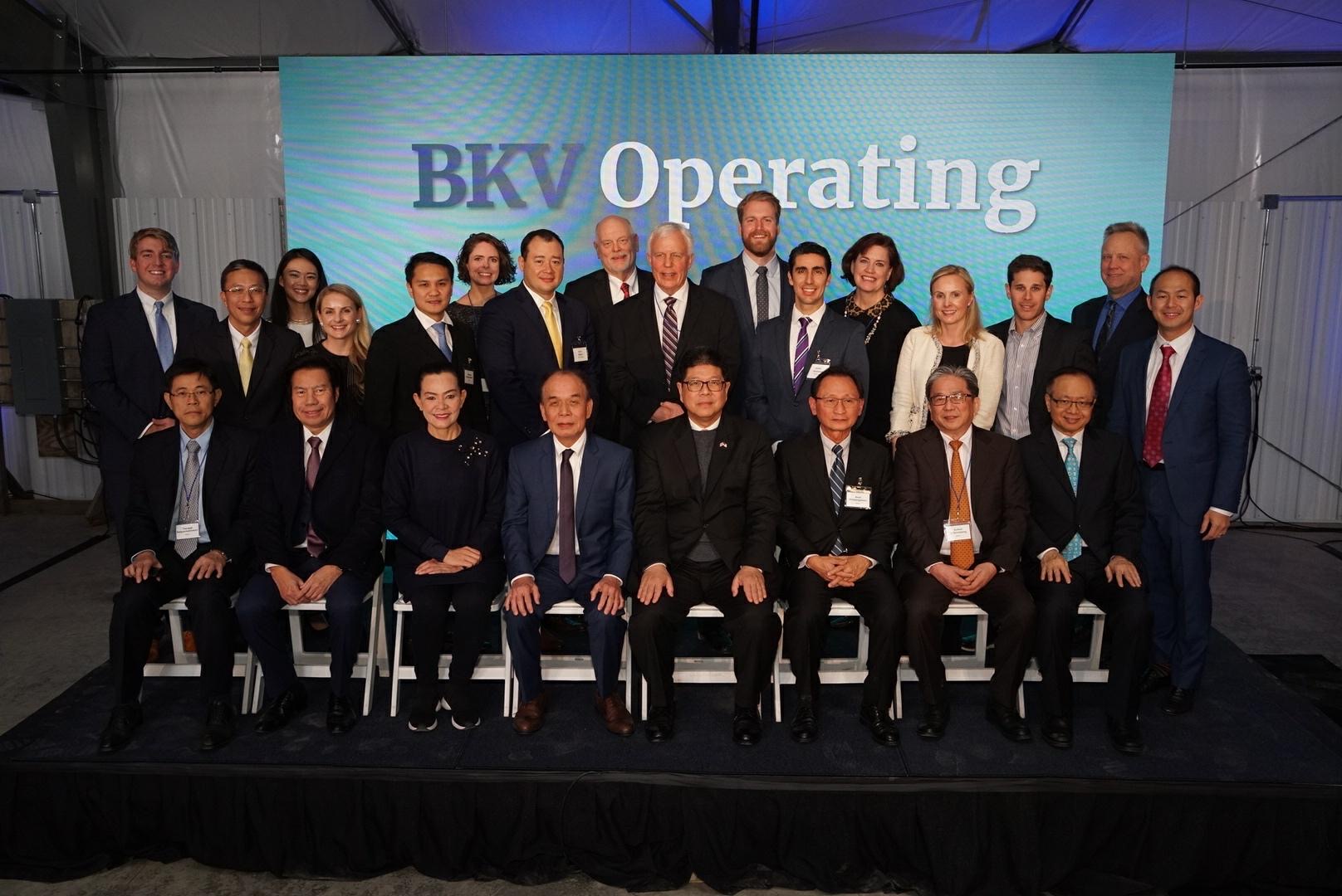โดยได้รับเกียรติจากนายธานี ทองภักดี เอกอัครราชทูต สถานเอกอัครราชทูต ณ กรุงวอชิงตัน (แถวนั่งที่ 4 จากขวา) นายสเตซี่ ฮูเบอร์ นายกเทศมนตรีเมืองทังค์แคนน็อค (แถวยืนที่ 8 จากขวา) พร้อมด้วยคณะกรรมการ ผู้บริหาร และพนักงานบริษัทบ้านปูฯ บริษัท Kalnin Ventures LLC และ บริษัท BKV Operating, LLC ตลอดจนผู้ถือครองที่ดินที่บริษัท BKV Operating เข้าทำการขุดเจาะ ร่วมแสดงความยินดีและเป็นสักขีพยาน