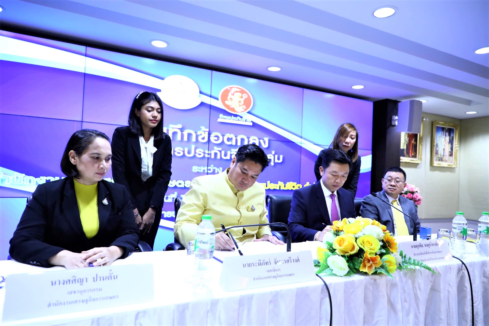17 ธันวาคม 2562 : บริษัท ทิพยประกันชีวิต จำกัด (มหาชน) โดย ศุภชัย จงศุภวิศาลกิจ ประธานเจ้าหน้าที่บริหารด้านการตลาด (ลำดับที่3จากขวา) และ สำนักงานเศรษฐกิจการเกษตร โดย ระพีภัทร์ จันทรศรีวงศ์ เลขาธิการสำนักงานเศรษฐกิจการเกษตร (ลำดับที่2จากซ้าย) ร่วมลงนามบันทึกข้อตกลง โครงการประกันชีวิตกลุ่ม ระหว่าง บริษัท ทิพยประกันชีวิต จำกัด (มหาชน) กับ สำนักงานเศรษฐกิจการเกษตร ณ สำนักงานเศรษฐกิจการเกษตร เมื่อวันที่ 11 ธันวาคม 2562 ![]()